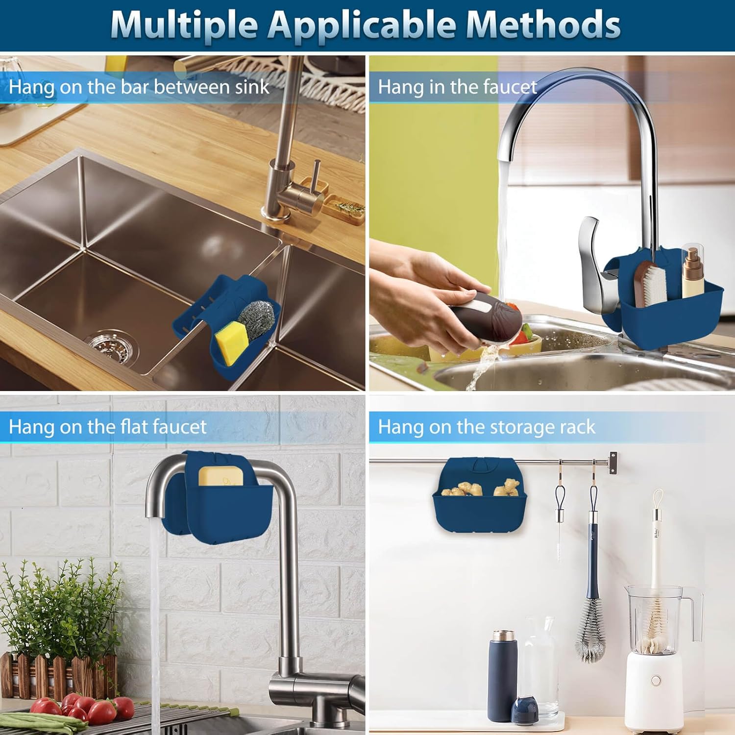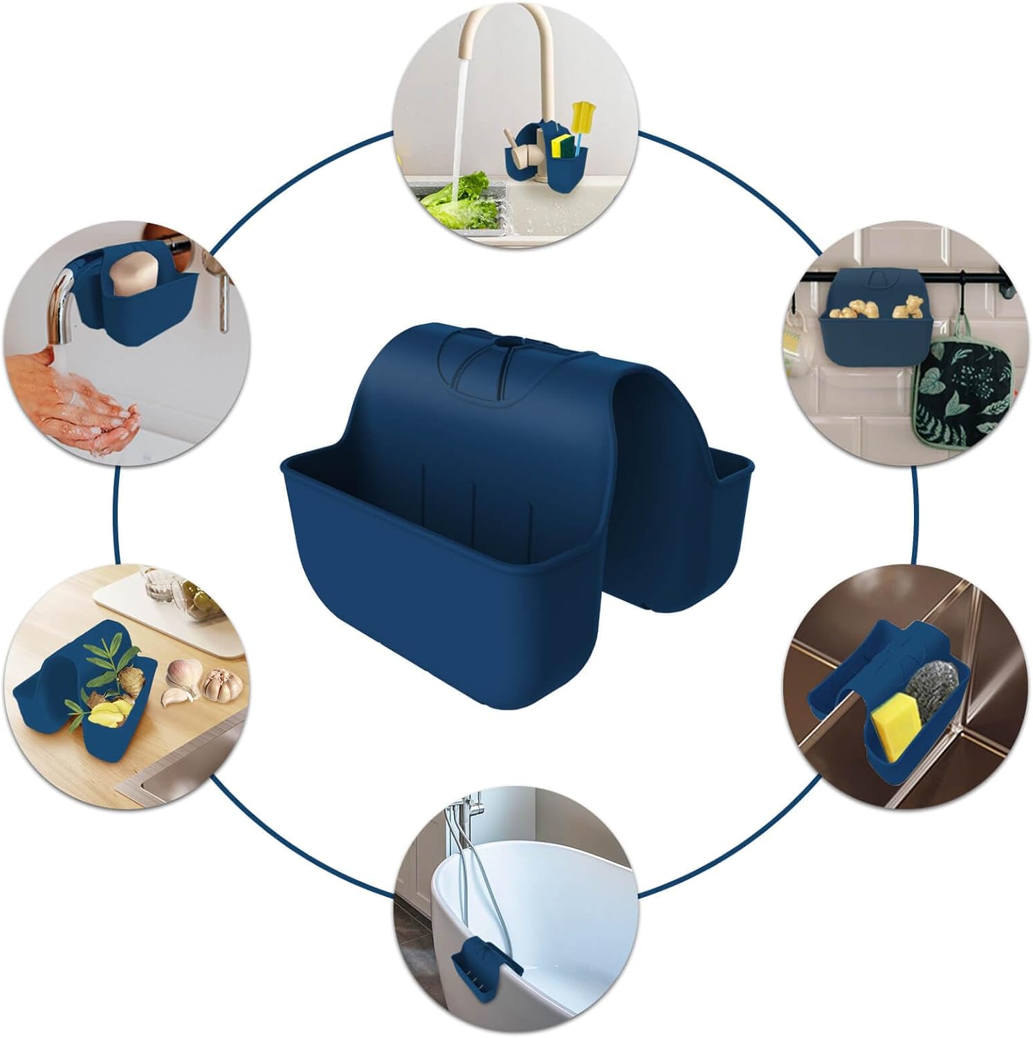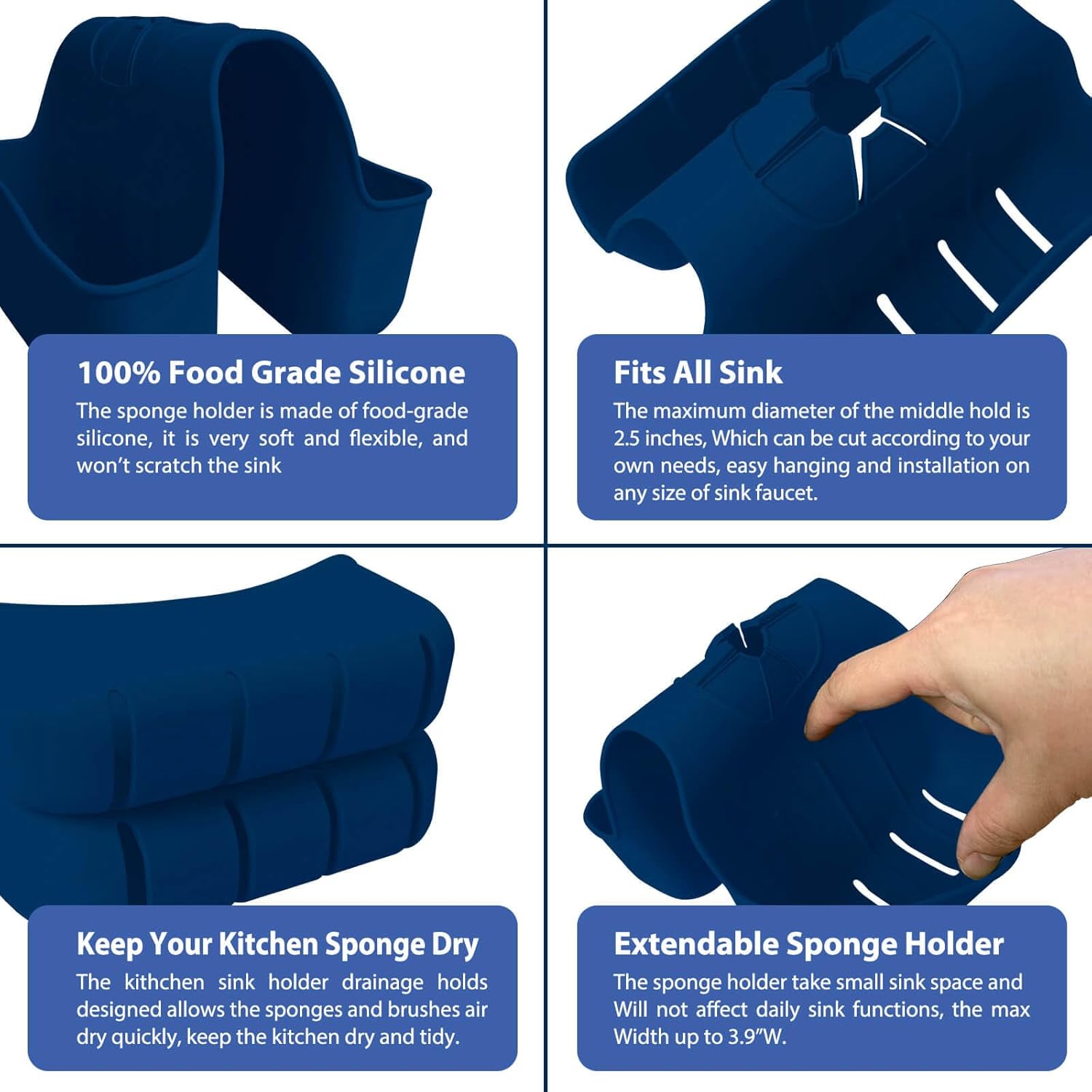 Sponge Holder for Kitchen Sink, Silicone Sink Saddle Caddy Organizer Rack, Sponges Holder Over Faucet, Hanging Kitchen Organizer Accessories Rack Basket Navy Blue