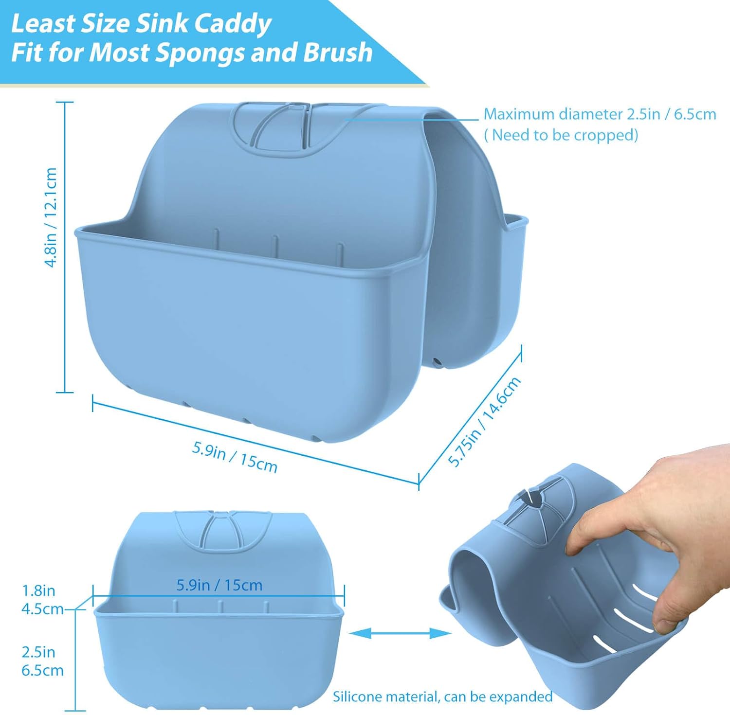 - 【Small Size Take Little Sink Space】 - The sponge holder take small sink space and will not affect daily sink functions and it's very soft and flexible. A single sponge rack size is 5.9"L x 2.5"H x 1.6"W, the max width up to 3.7"W