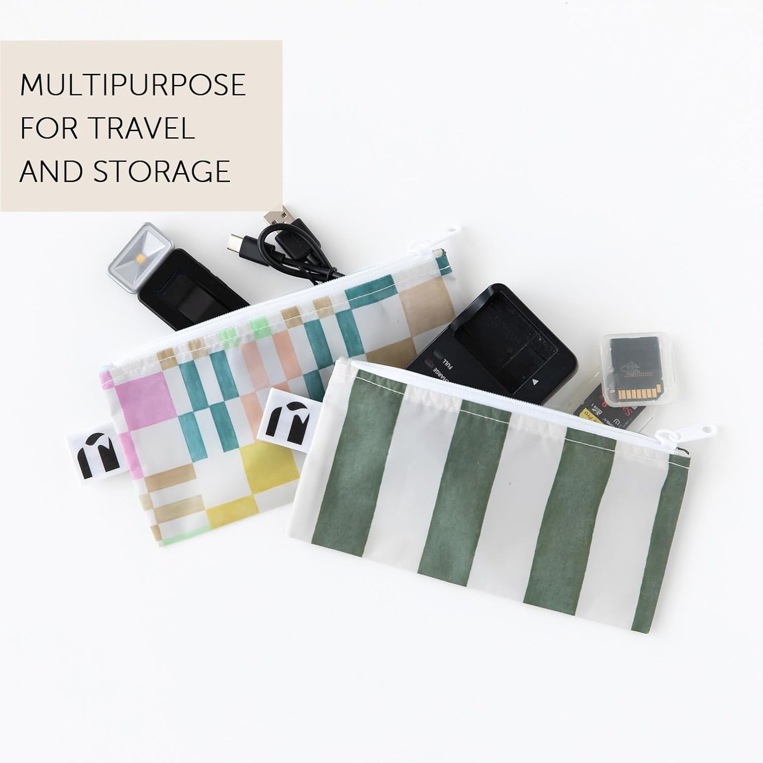 Roamio Reusable Sandwich and Snack Bags, for Kids School Lunch and for Adults Portion, Washable Fabric, Waterproof Cloth Zip Bag, Pack Travel Pouch, Food-Safe, 4-pack Set Green Stripe and Multi Check