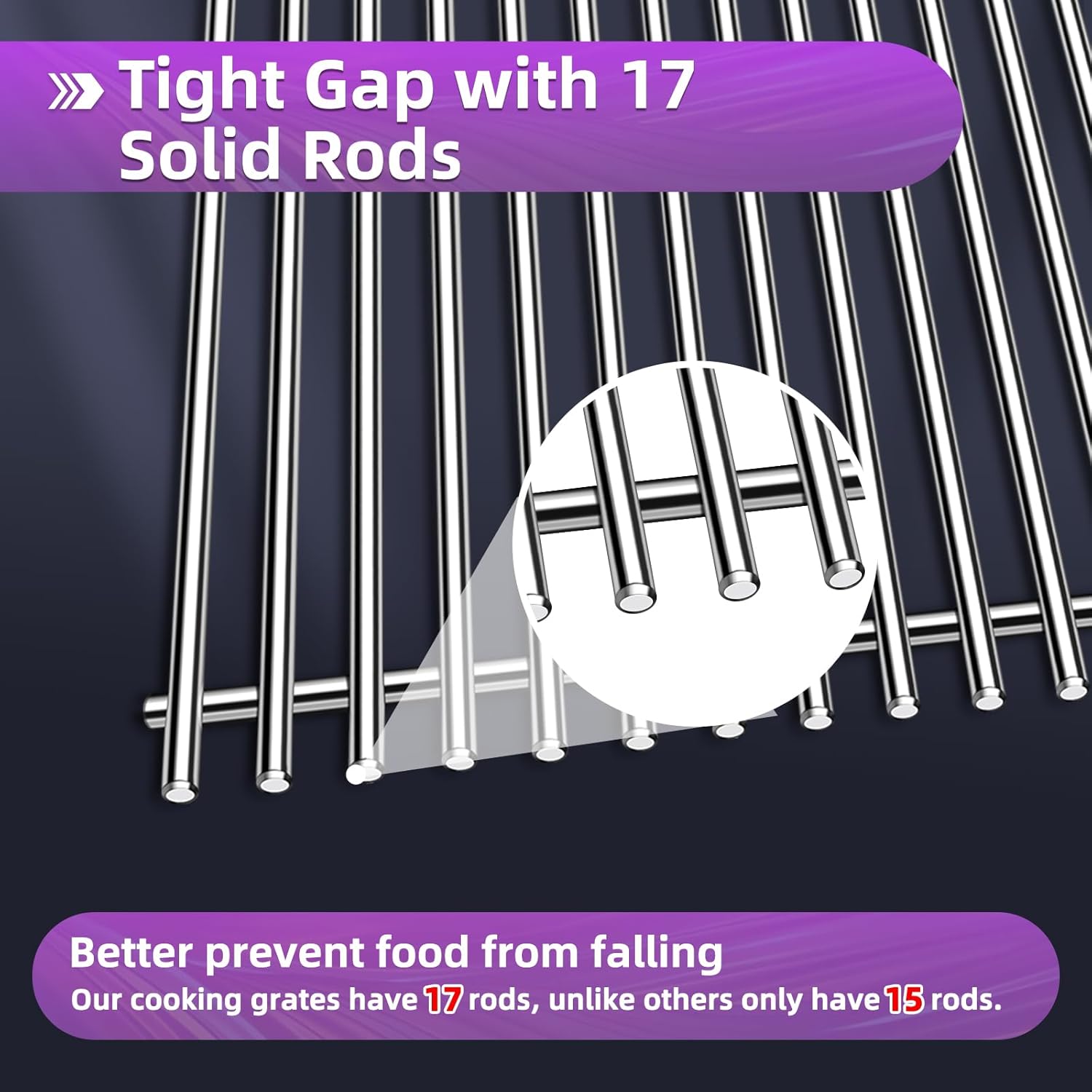 - 【Durable & Easy to Clean】 Stainless steel will not rust and more durable. After using the cooking grill grate, just use a grill scrubber brush and soap to clean, then put it into water to soak. Steam and brush will separate the food residue from the cooking grids, very easy to clean. It should be cleaned in time, and then stored in a dry environment to prolong service life.