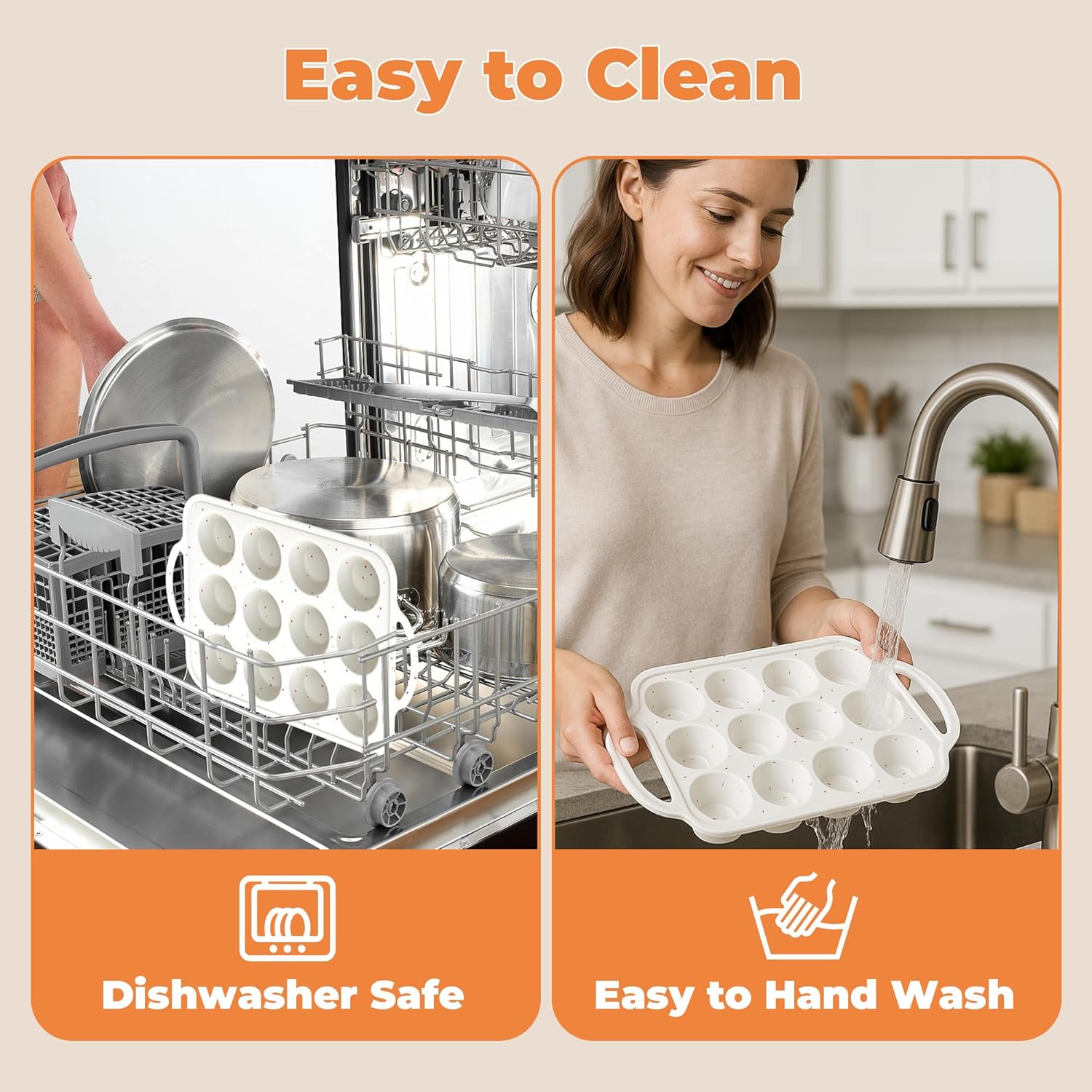 - 【Easy to clean& dishwasher safe】Due to the silicone material of the muffin pan itself, cleaning is very easy. Simply rinse with water or put it in the dishwasher. After cleaning, you can hang it on a hook to dry!