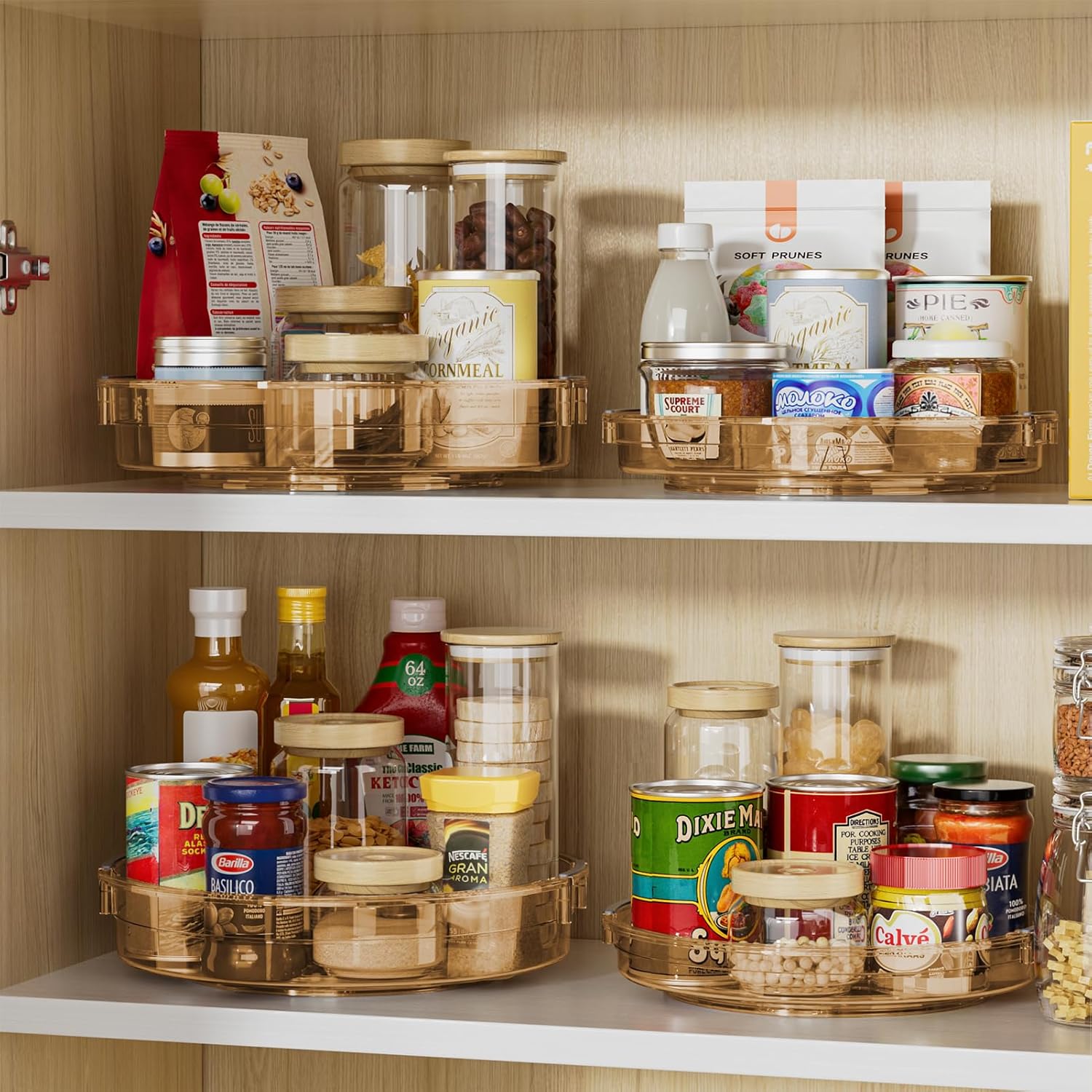 LAMU 4 Pack Lazy Susan Organizer, Lazy Susan Turntable for Cabinet, Refrigerator, Table Top, Kitchen, Bathroom, Pantry Organizers and Storage, 12in 10.6in, Amber