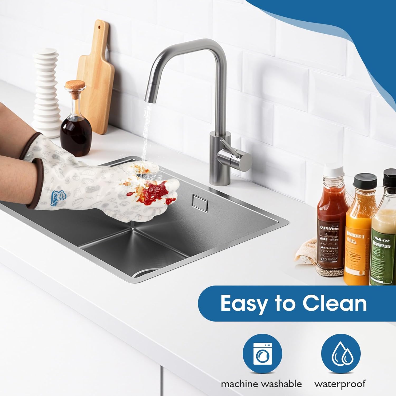 - 【Heat & Cold Resistant】Oven mitts have been tested and meet safety standards EN407:2020 Level 3, allowing them to handle high heat. They can withstand temperatures up to 662℉. Great for working with hot grills, ovens, and other tasks that involve high heat.