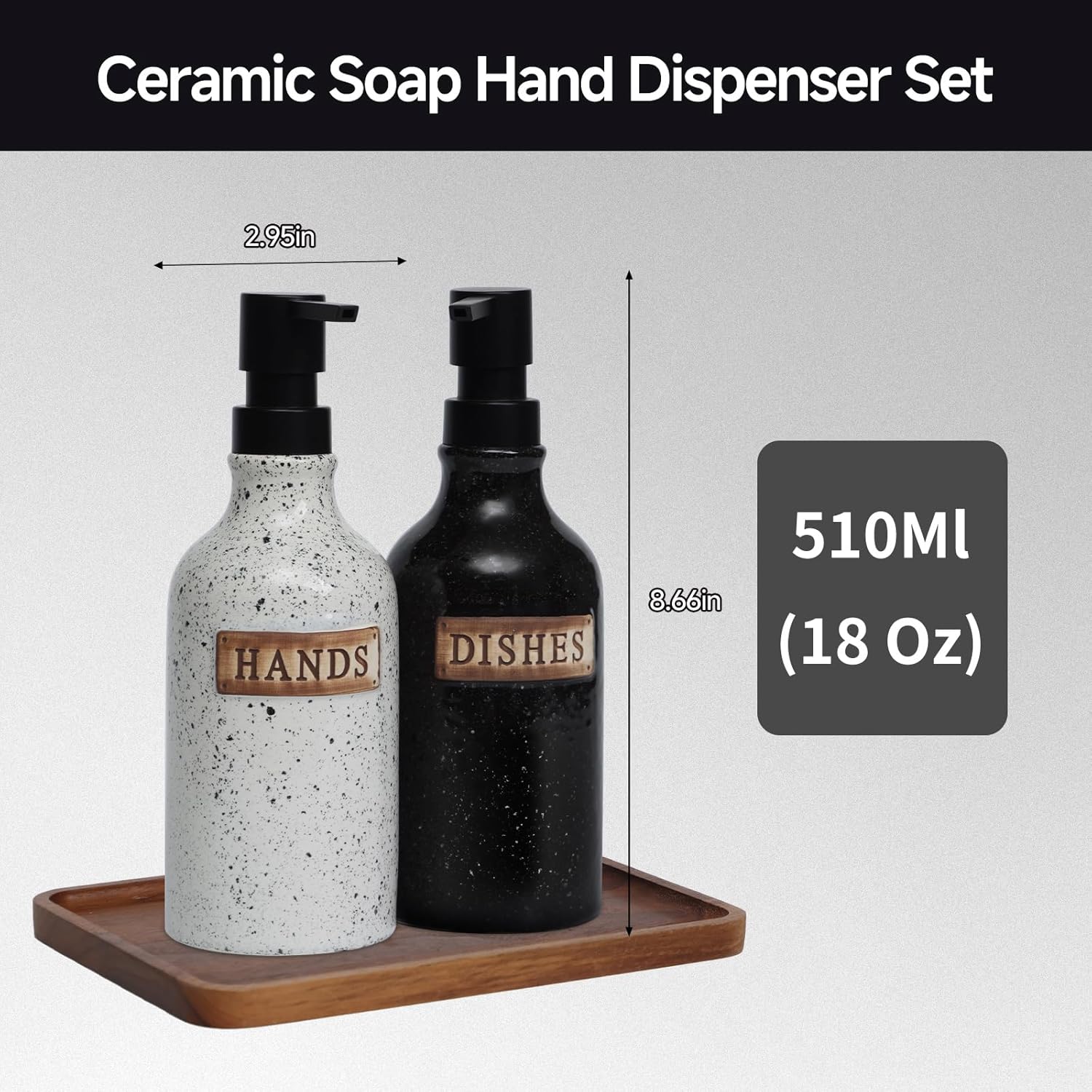 Hand and Dish Dispenser for Kitchen Sink, Ceramic Soap Dispenser Bathroom Countertop, 18 OZ Vintage Handwash Liquid Pump Dispenser for Bathroom Farmhouse Vintage Kitchen Decor
