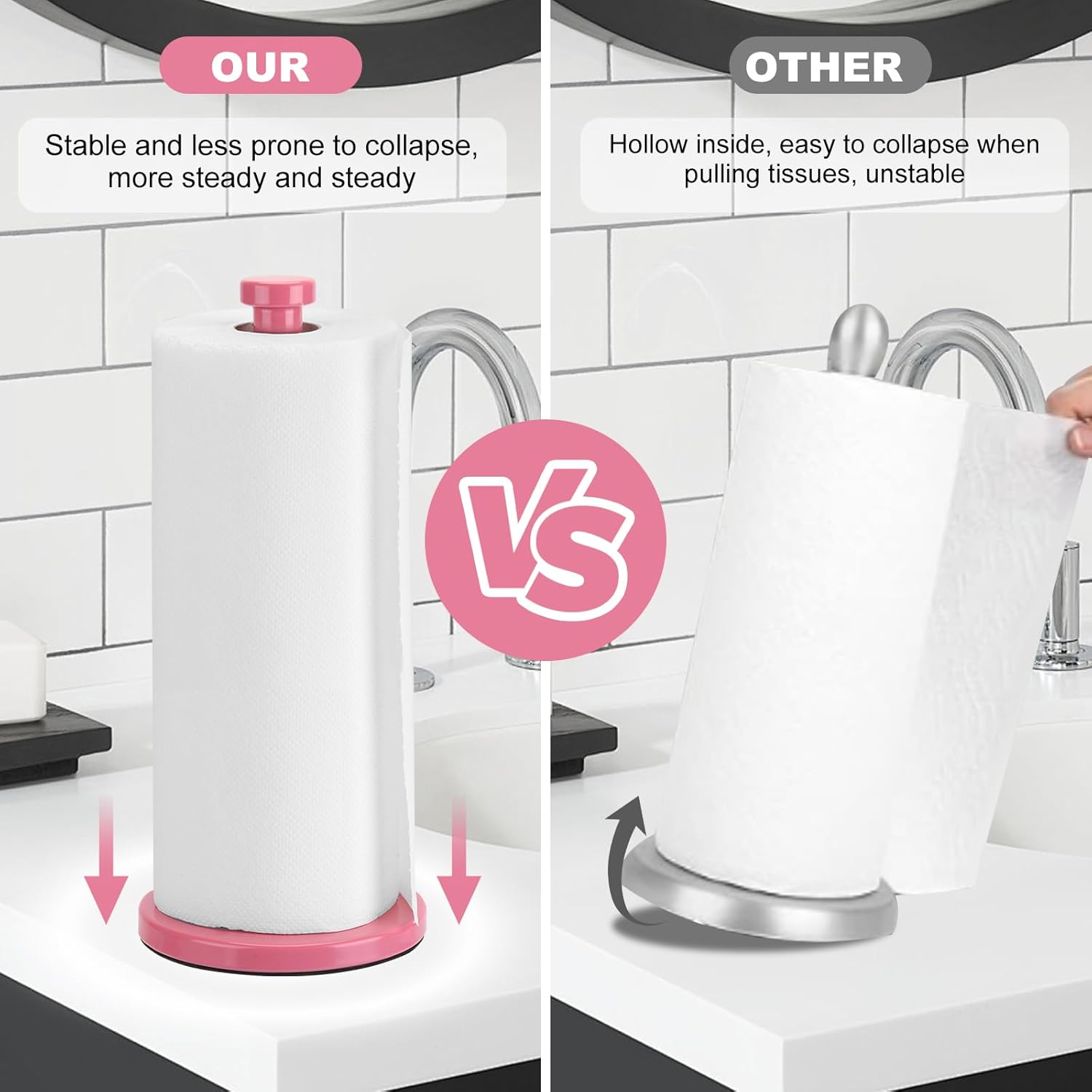 Stainless Steel Paper Towel Holder, Pink, Countertop for Kitchen & Bathroom, Standing with Weighted Base for Standard or Rolls, Brushed Brass