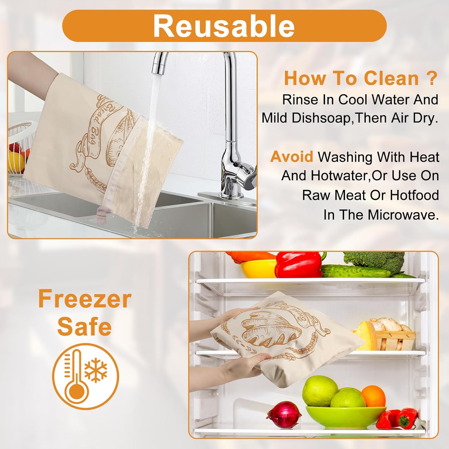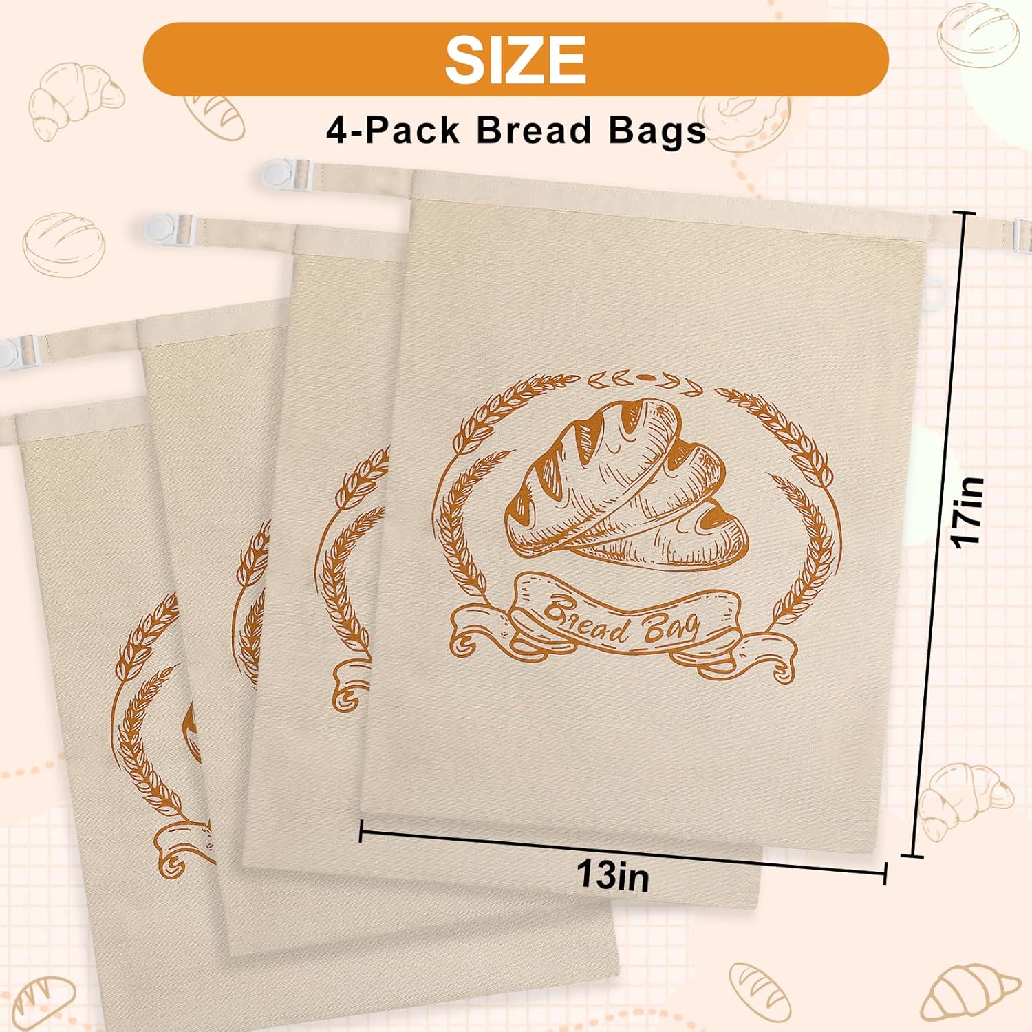 - Versatile Kitchen Use for Bread, Produce & More : These large bags are perfect for storing sourdough, baguettes (sliced to fit), bagels, croissants, and other baked goods. Also great for fruits, vegetables, or dry snacks. Reusable after a simple rinse and air-dry, they’re an eco-friendly alternative for households, cafes, or markets