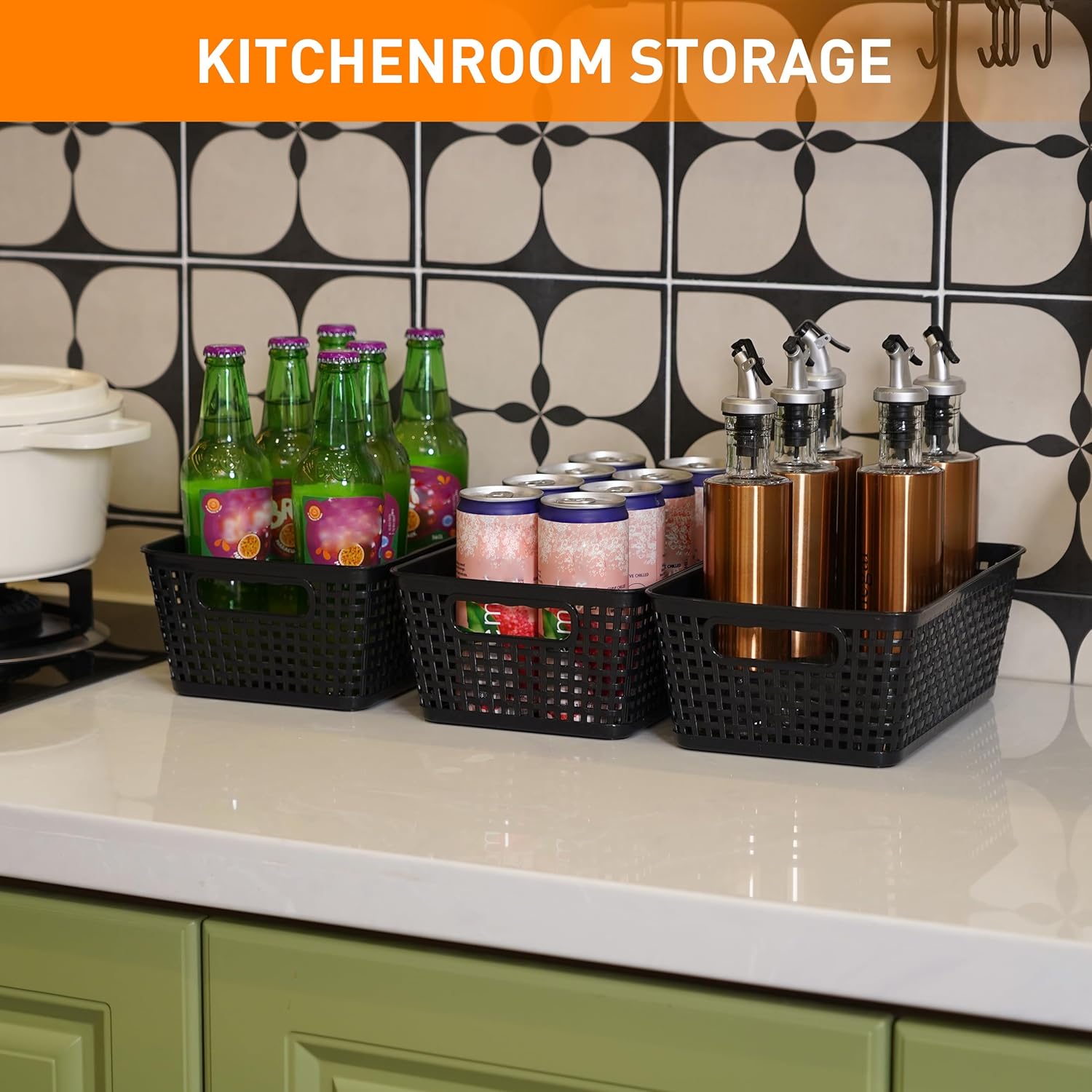 - Multifunctional Storage:This set of 8 black plastic storage bins with lids is perfect for organizing shelves, drawers, desktops, closets, and more. Ideal for stationery in classrooms, or office documents, bathroom amenities, it transforms cluttered spaces into tidy, efficient areas