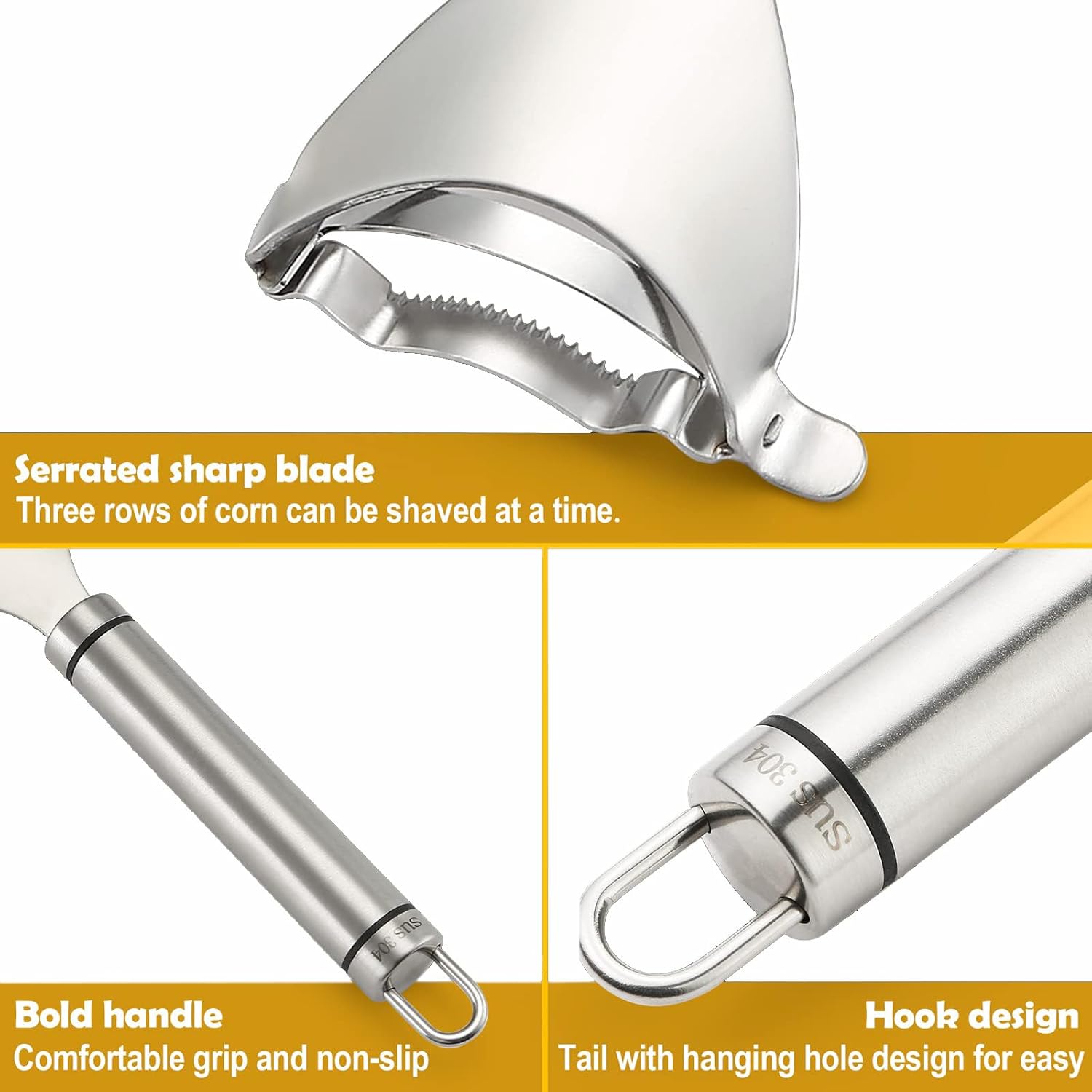 - 【Easy to Use & Clean】 Just slide the peeler along the cob and let the blades do the work. After use, rinse under water or toss in the dishwasher. Compact and easy to store