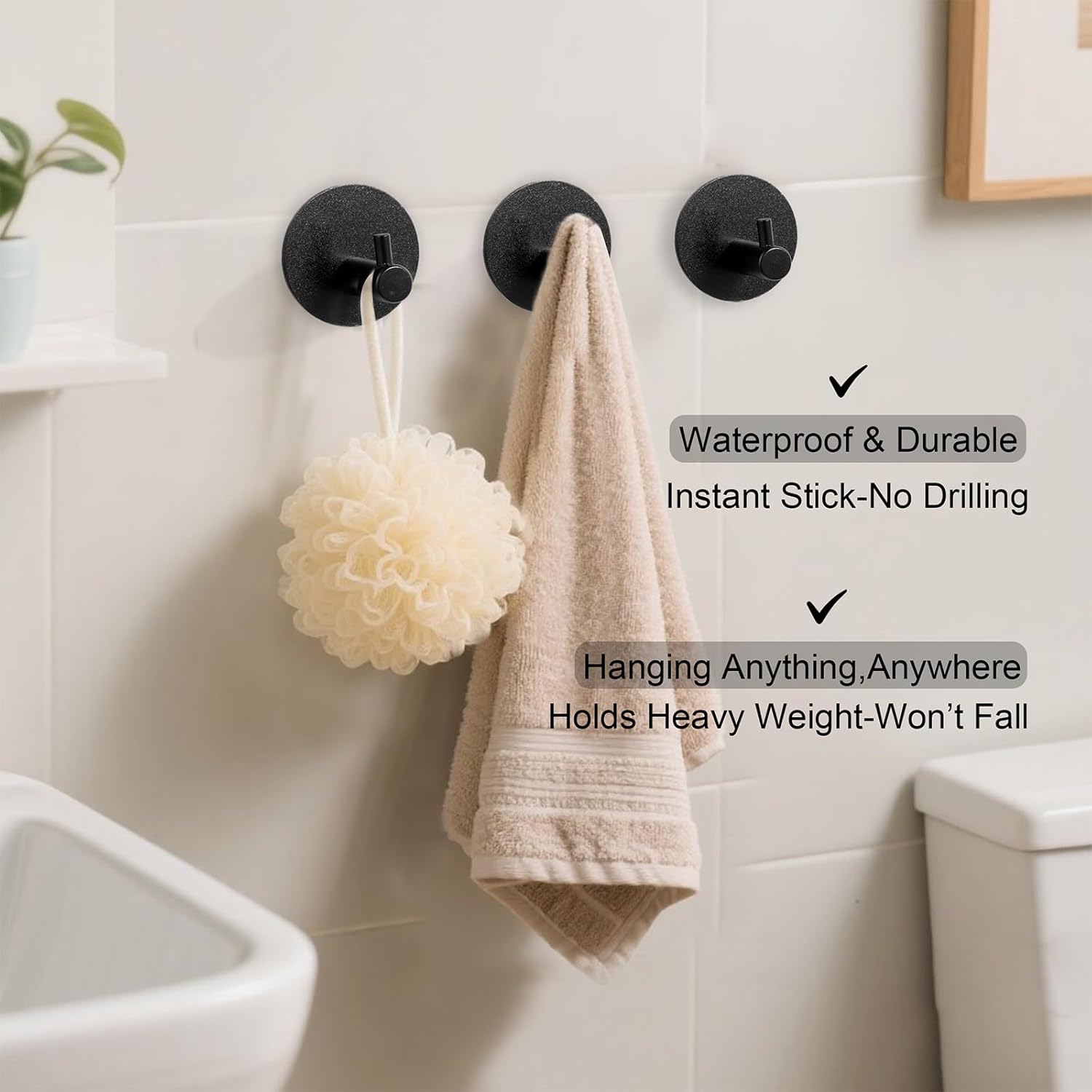 - 【Rust-Proof & Waterproof – Ideal for Bathroom & Kitchen】 Made from durable aluminum with a sleek, modern finish, these waterproof hooks resist rust and moisture, making them perfect for bathrooms, kitchens, garages, and outdoor use. The smooth surface wipes clean easily, maintaining a polished look.