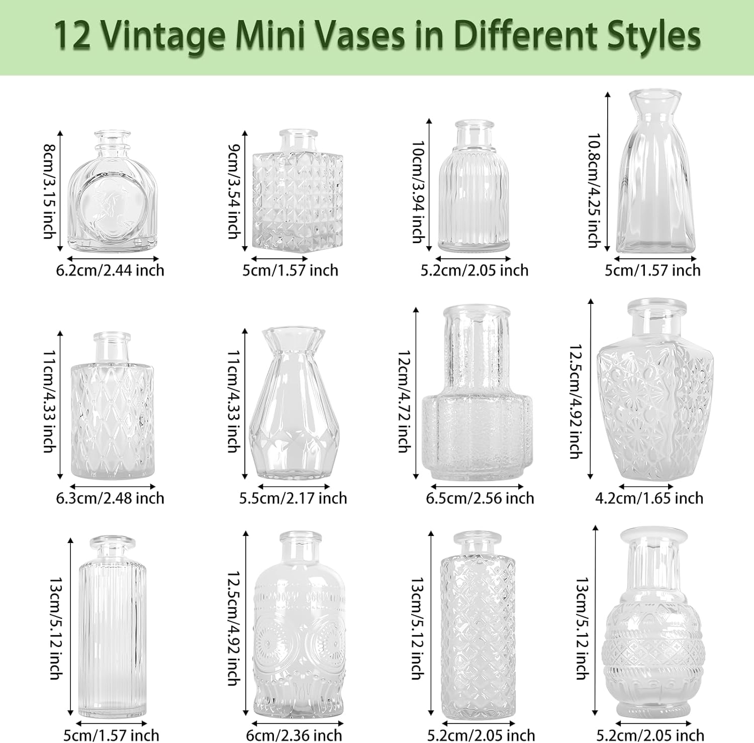 Glass Bud Vase Set of 12 Pcs, Small Clear Bud Vases for Flowers, Vintage Vases for Centerpiece Table Wedding Decorations Home Decor Glass Bottles for Birthday Party Anniversary