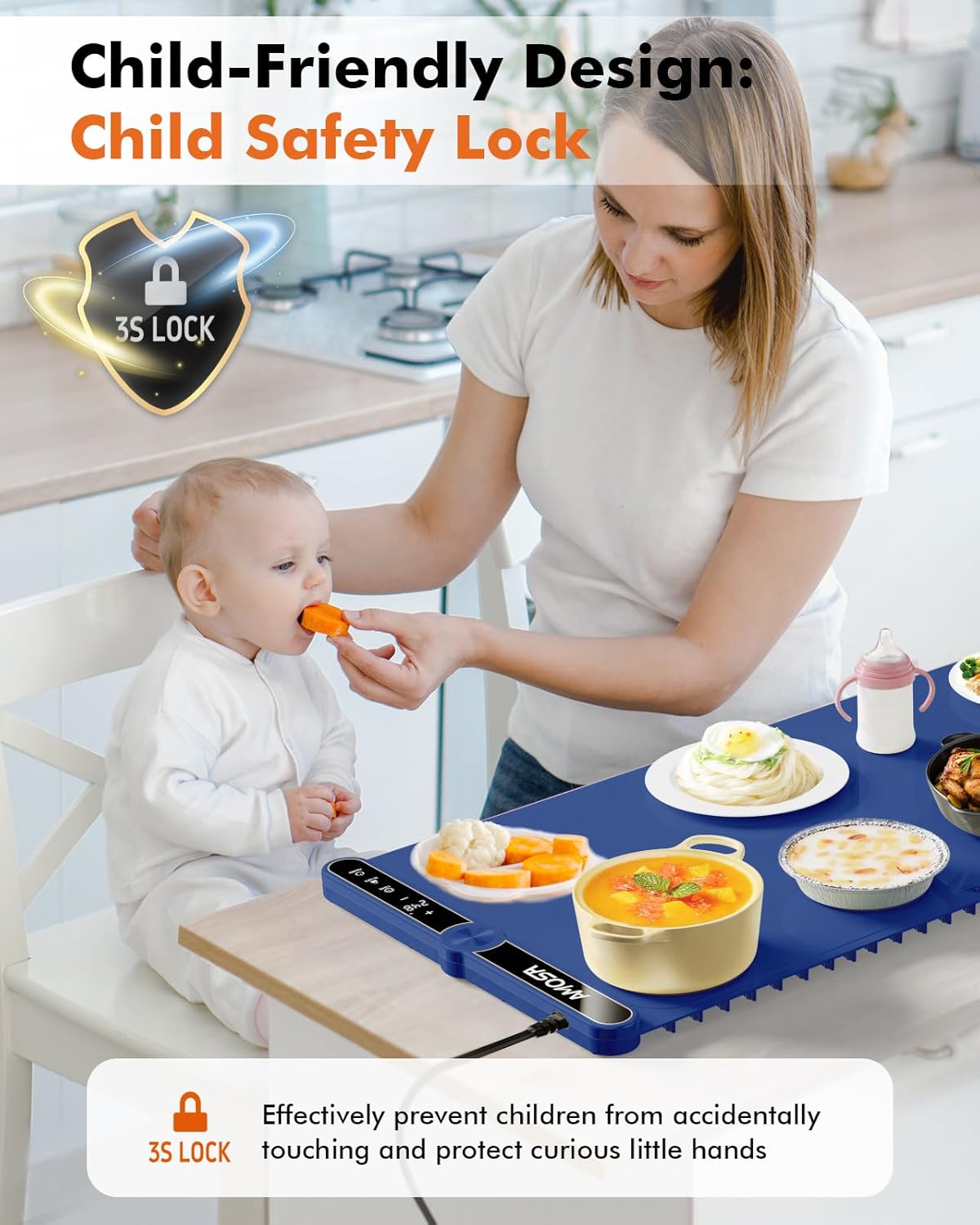- 【What You Get】AMOSA Electric Food Warmer*1, Power Cord*1, Silicone Straps*1, Storage Bag*1, Placemat*1, User Manual*1, AMOSA up to 24-month after-sales service, and 7-day/24-h friendly customer service. If you have any problems, we will 100% solve them.