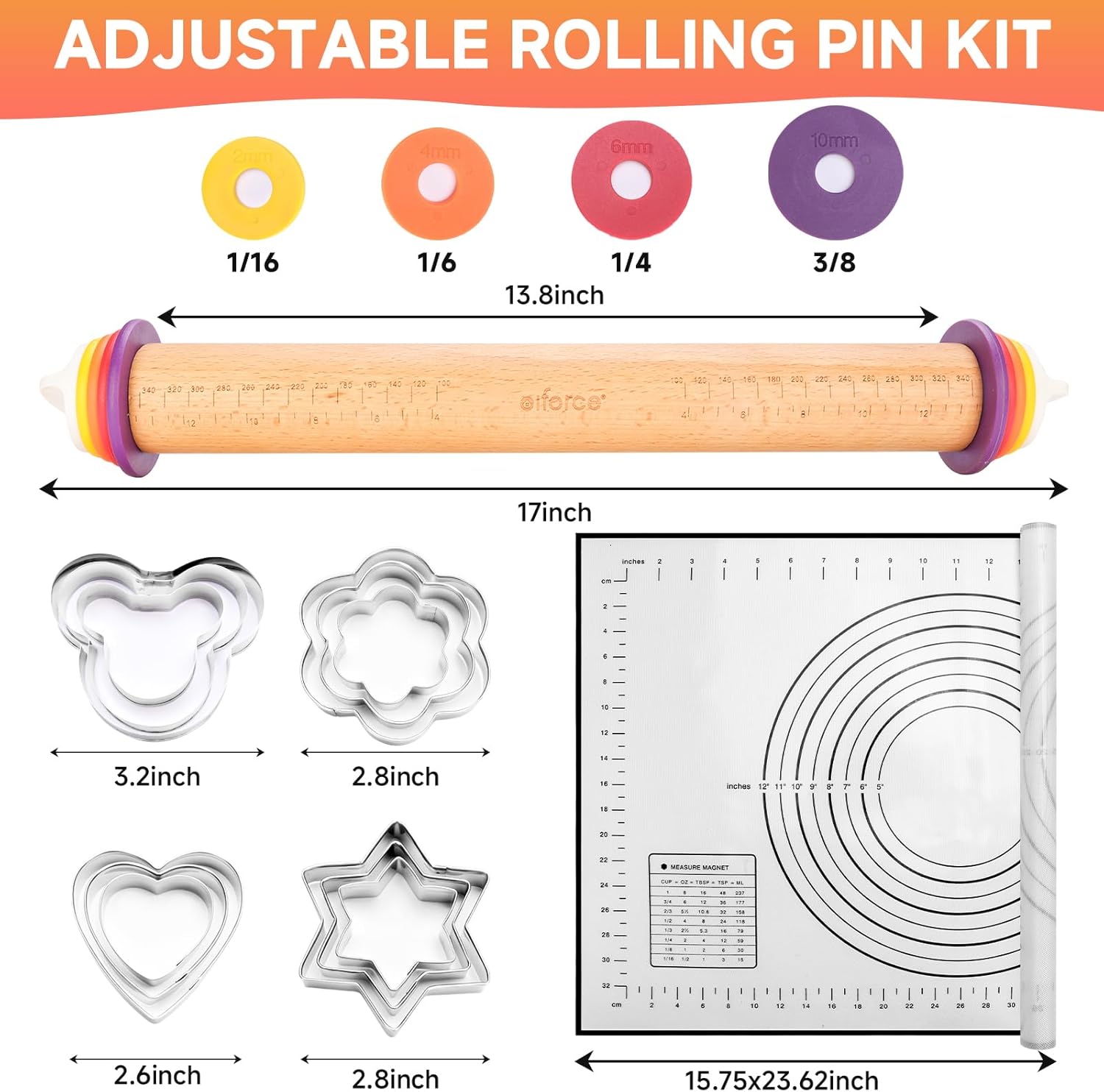 - 【Great Gift】Customer satisfaction is the pursuit of our team, whether it is a professional cooking master or a housewife, you deserve to have an adjustable rolling pin,pastry baking mat and cookie molds,it will make your cooking easier and comfortable,It is also the best choice for gifts.