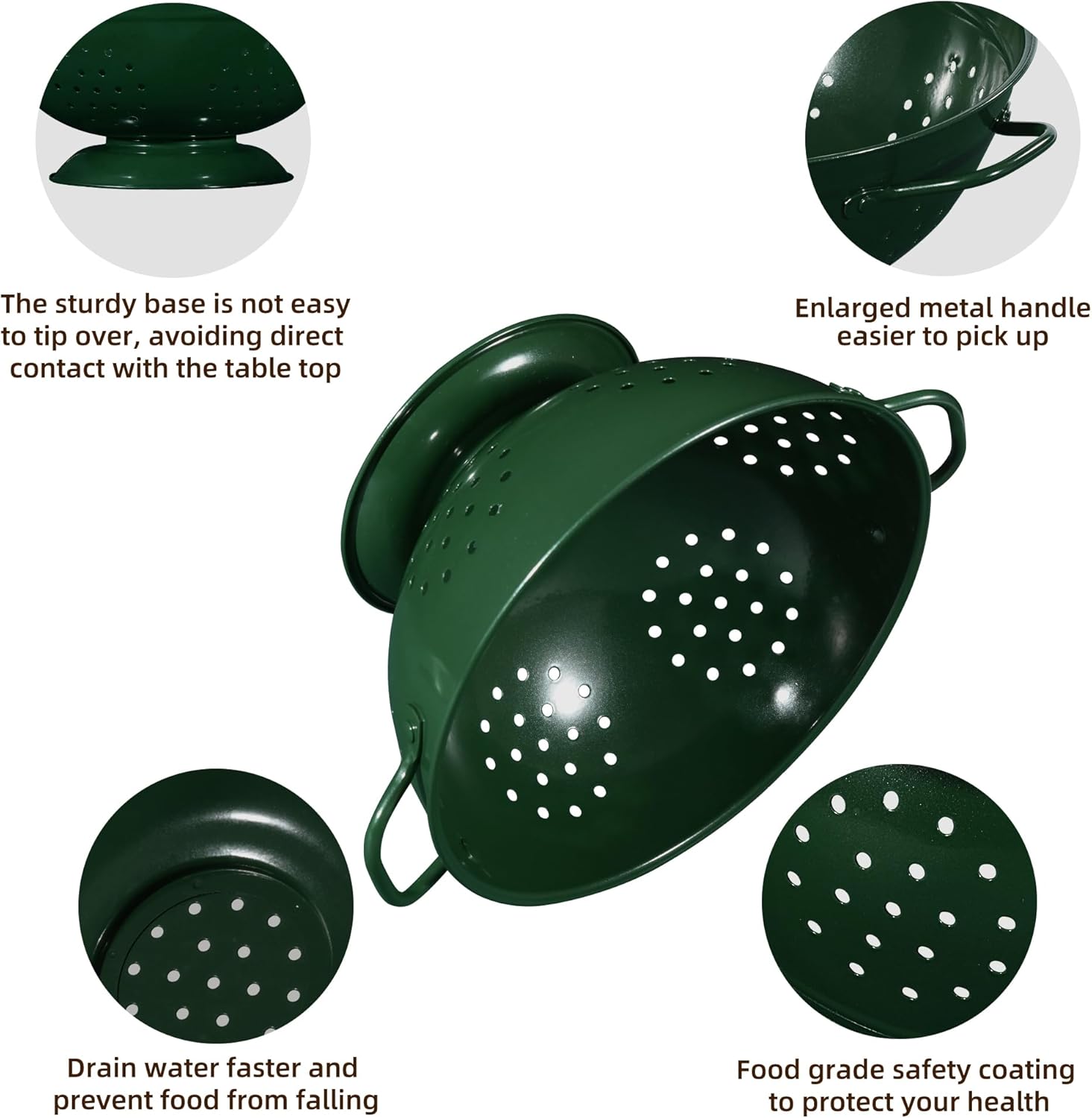 - ăGood Quality Materială: Colander is made of durable metal, with food-safe powder coated, even after long time using, it wont be rusted.