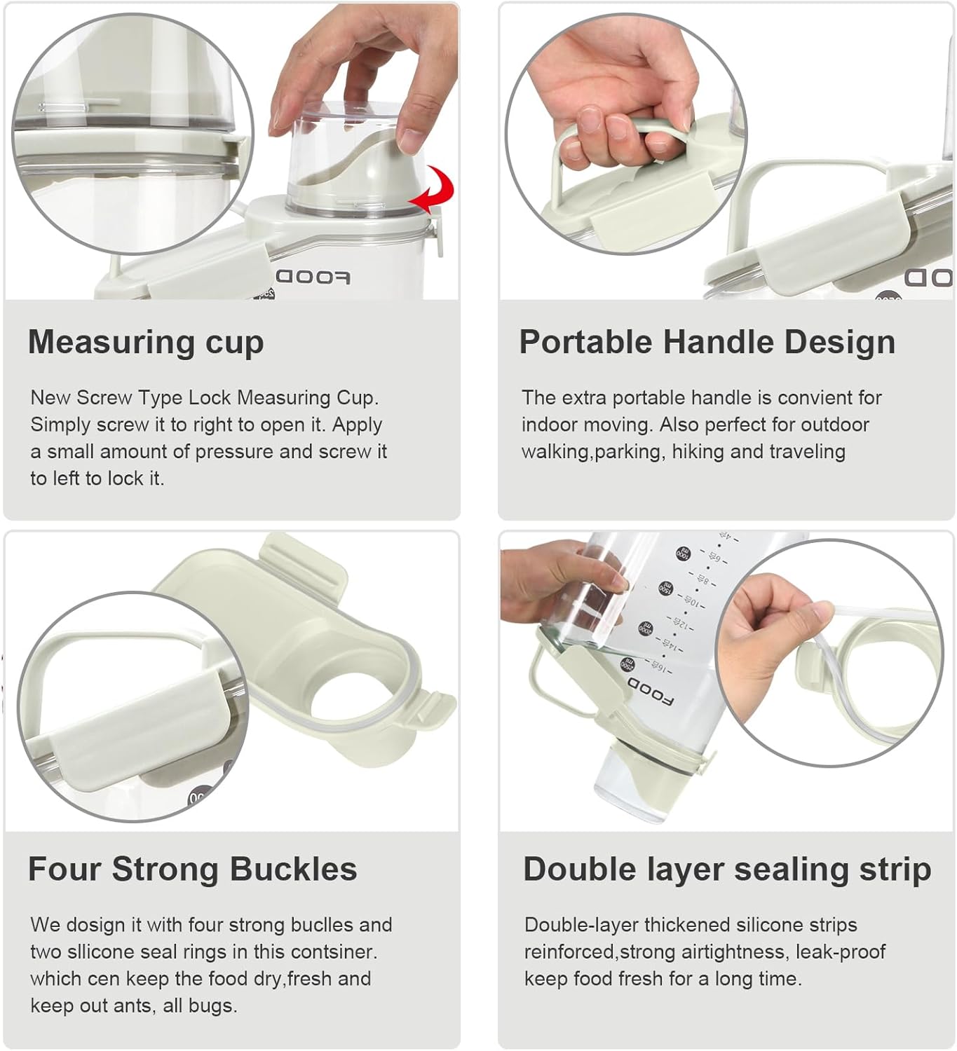 - LARGE CAPACITY:Portable rice airtight storage container capacity of 5 liters, which is very suitable for beans,Cereal,flour, sugar, oatmeal, coffee, rice, nuts, snacks, dog food, cat food, pet food, etc. (Note: The storage capacity of the container varies depending on the size of the food. Pet food can hold 5 pounds, and rice food can hold 5-10 pounds)