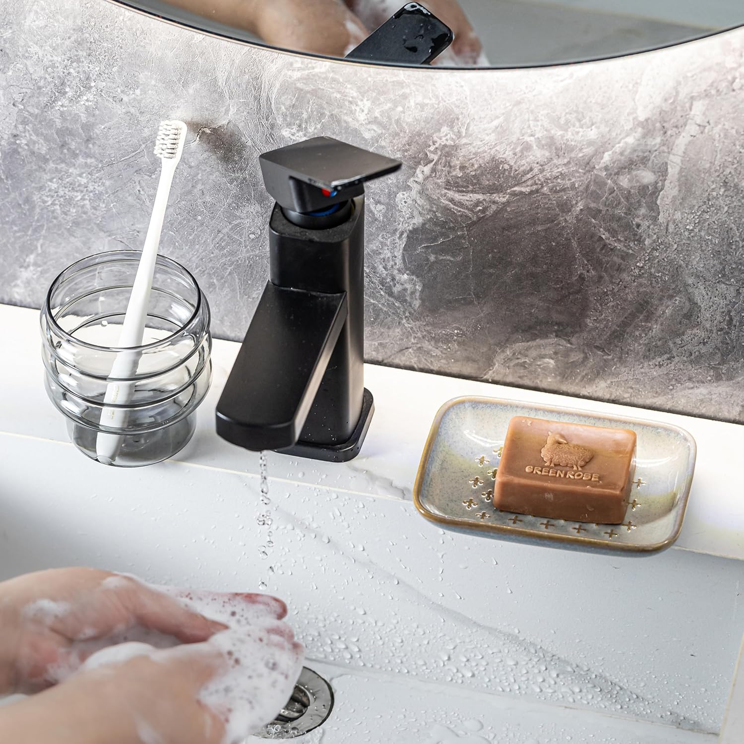 - PREMIUM CERAMIC & EFFORTLESS CLEANING: Crafted from premium and enduring ceramic, this soap dish features waterproof, slip-resistant, and heat-resistant properties. The unglazed bottom ensures stable placement to avoid sliding. Its smooth surface enables easy maintenance - gently wipe with a soft brush or clean in the dishwasher (weekly recommended).