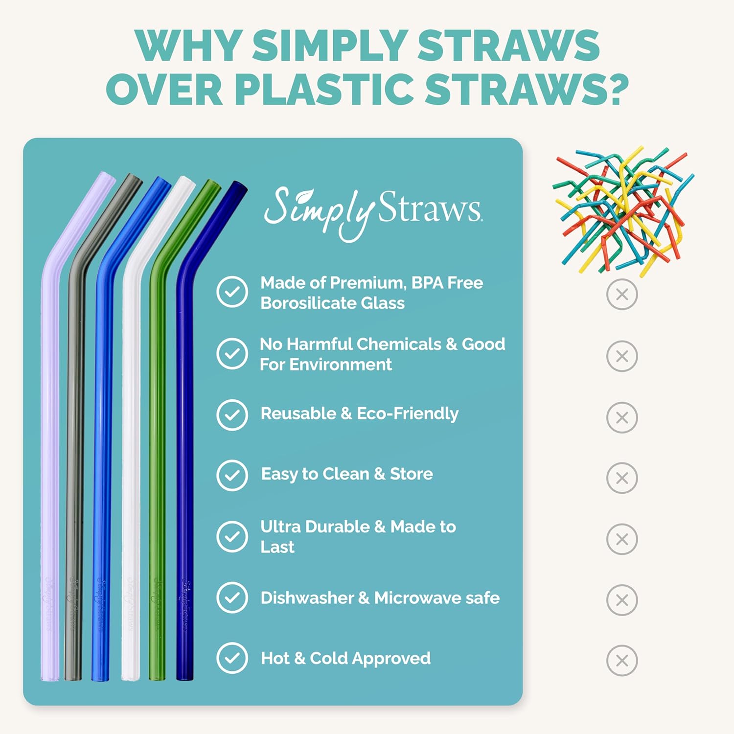 Simply Straws 10 Inch Glass Straws Bent (6-Pack) – Reusable Glass Straws for 24 Oz Mason Jars & Tumblers, with Cleaning Brush – Durable, Dishwasher Safe, Hot & Cold Use, BPA-Free (Seaglass)