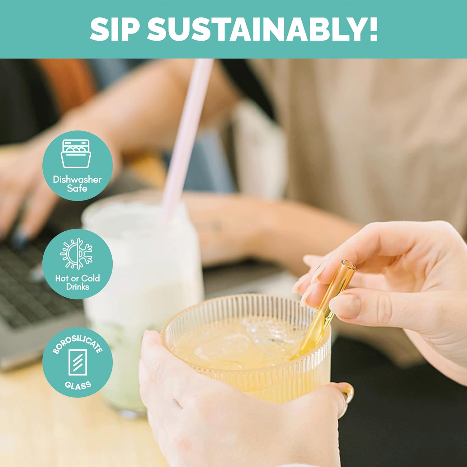 - Reusable, Rinseable: Cut down on waste with every sip with these reusable glass straws. Dishwasher-safe and includes a cleaning brush for when you want that extra-deep clean.