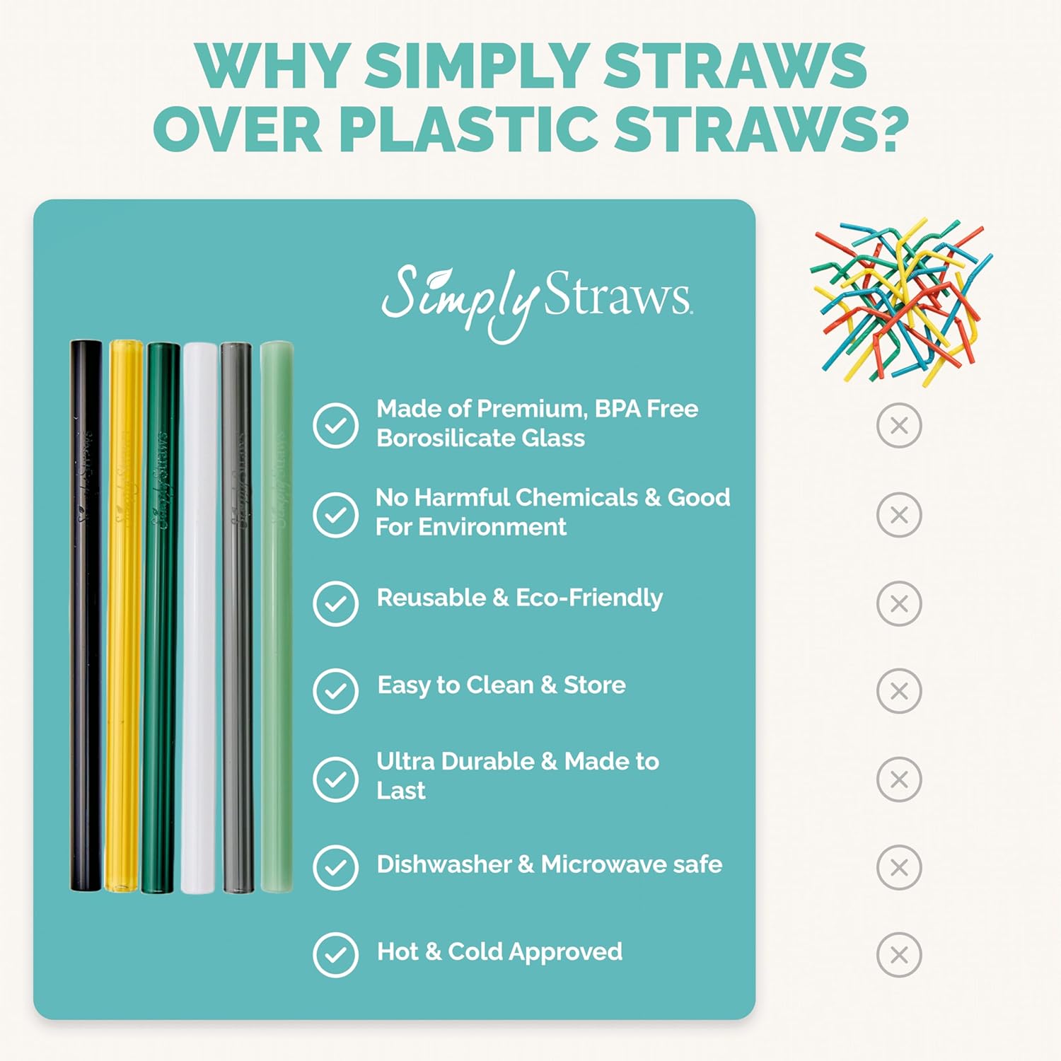 - Reusable, Rinseable: Cut down on waste with every sip with these reusable glass straws. Dishwasher-safe and includes a cleaning brush for when you want that extra-deep clean.