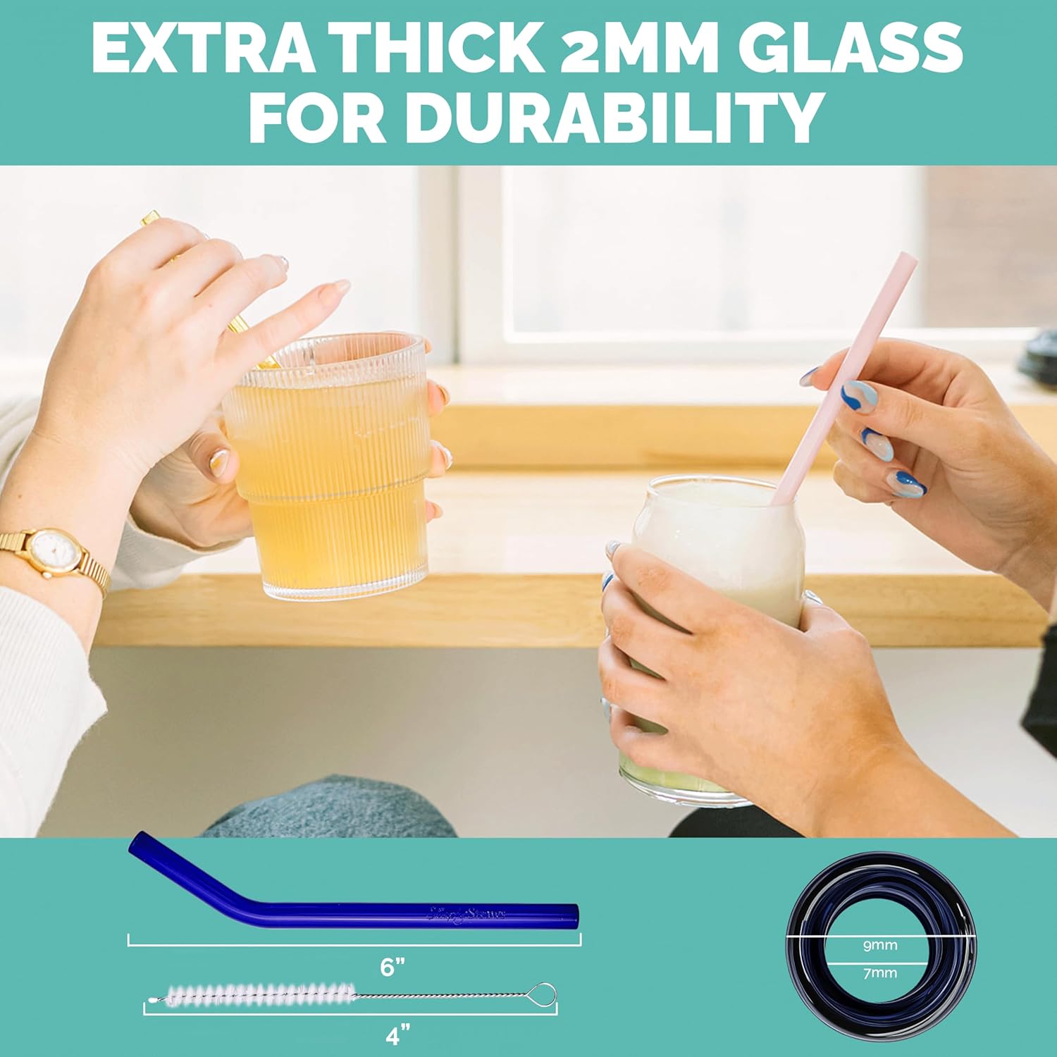 - Thick Glass, Tough Build: Each glass straw is 2mm thick for real durability, built to handle hot or cold drinks, and microwave & dishwasher-safe.