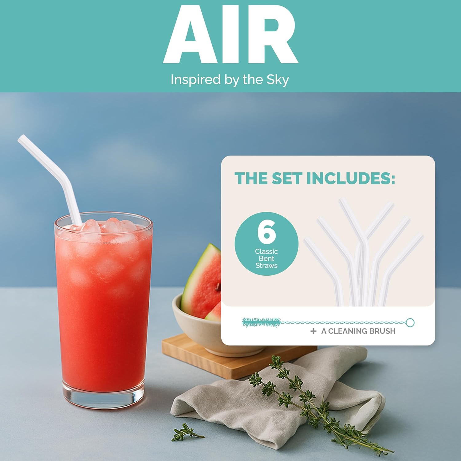 Simply Straws 8 Inch Glass Straws Bent (6-Pack) – Reusable Glass Straws for Pints & Juice Drinkware, with Cleaning Brush – Dishwasher Safe, Hot & Cold Use, BPA-Free (Air)