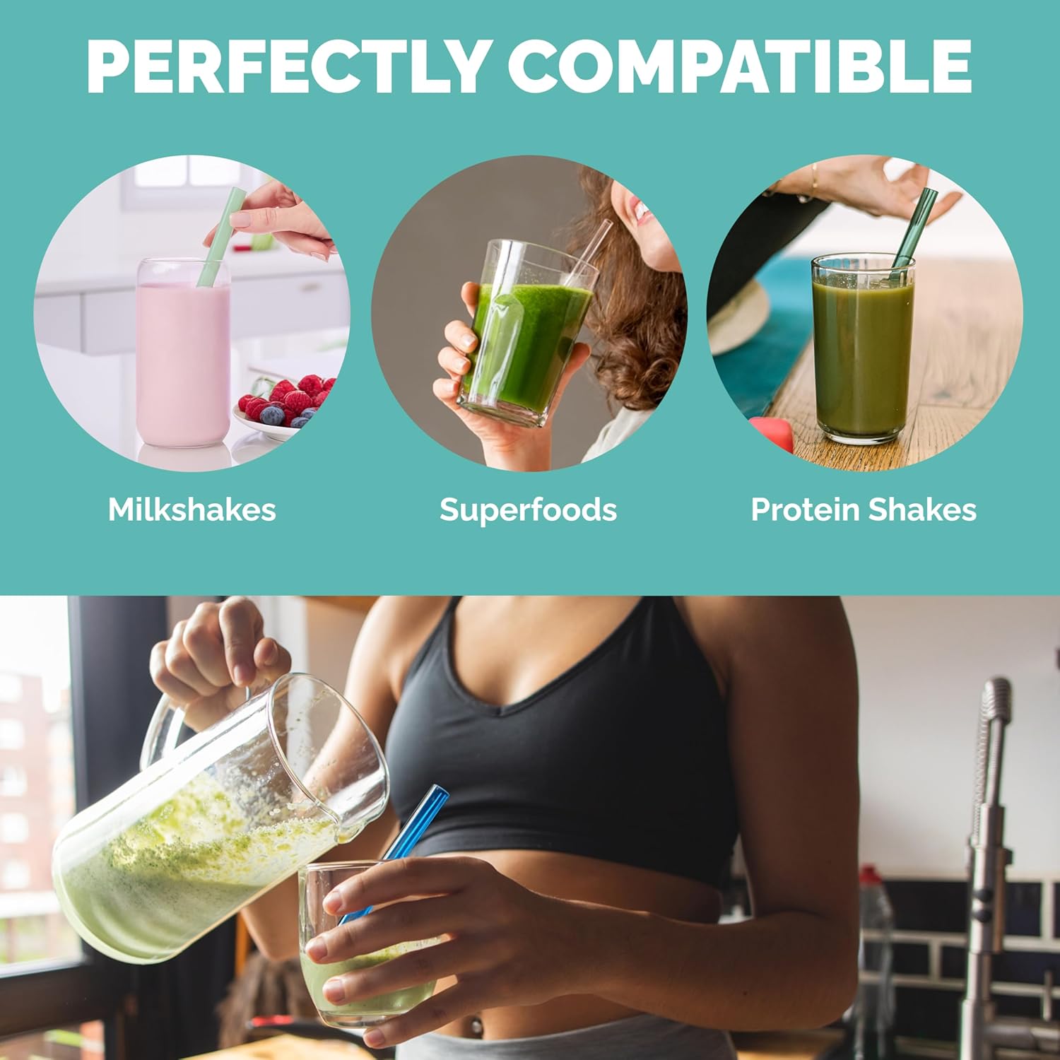 - Sized for Medium Glasses: Each 8 inch glass smoothie straw fits pint glasses, juice tumblers, and everyday drinkware—ideal for bubble tea, protein shakes, and frozen blends.