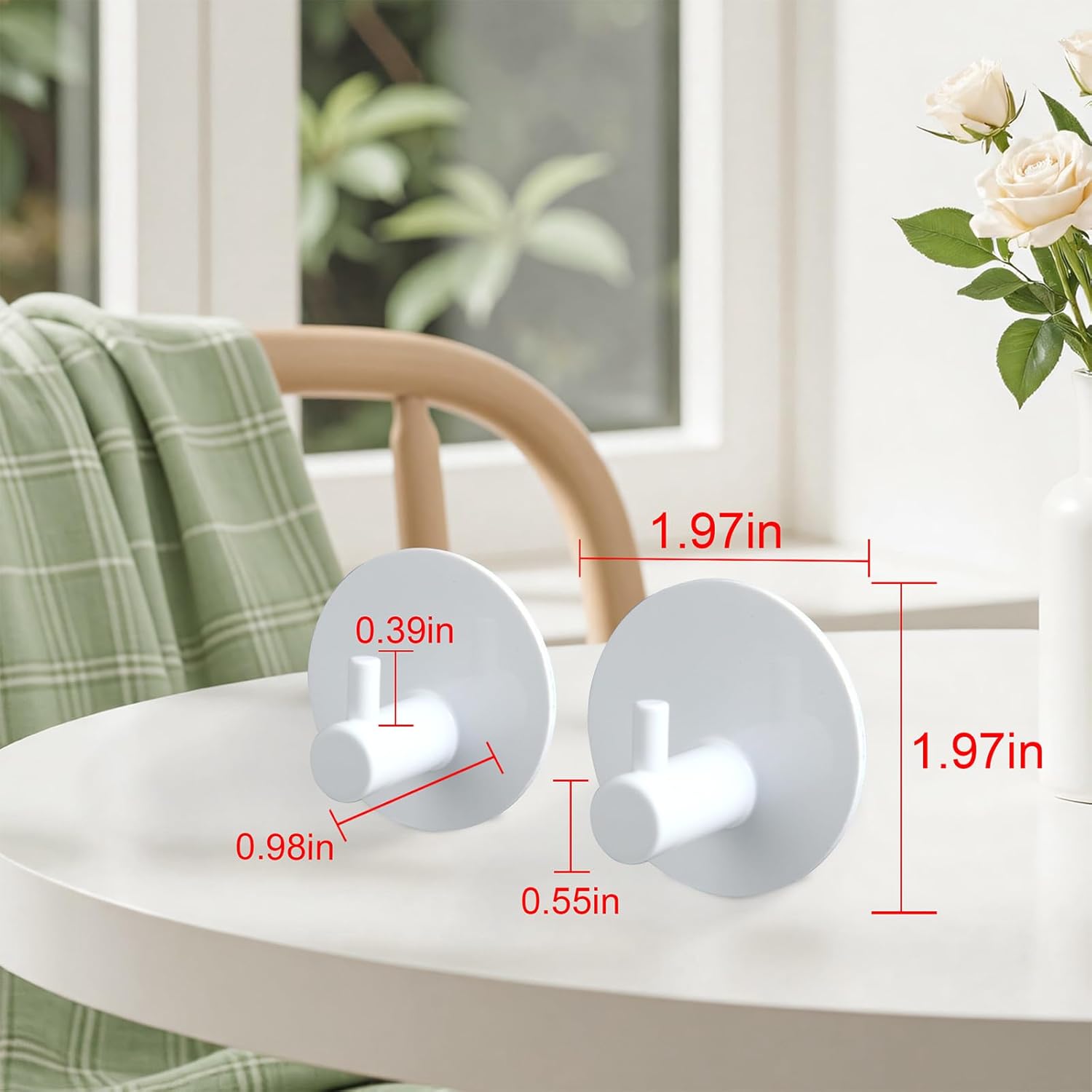 Aluminum Wall Hooks, No Drill Damage-Free Adhesive Hook, Product for Hanging Heavy Duty for Bathroom Kitchen Home (Single Round White Hook, 4)
