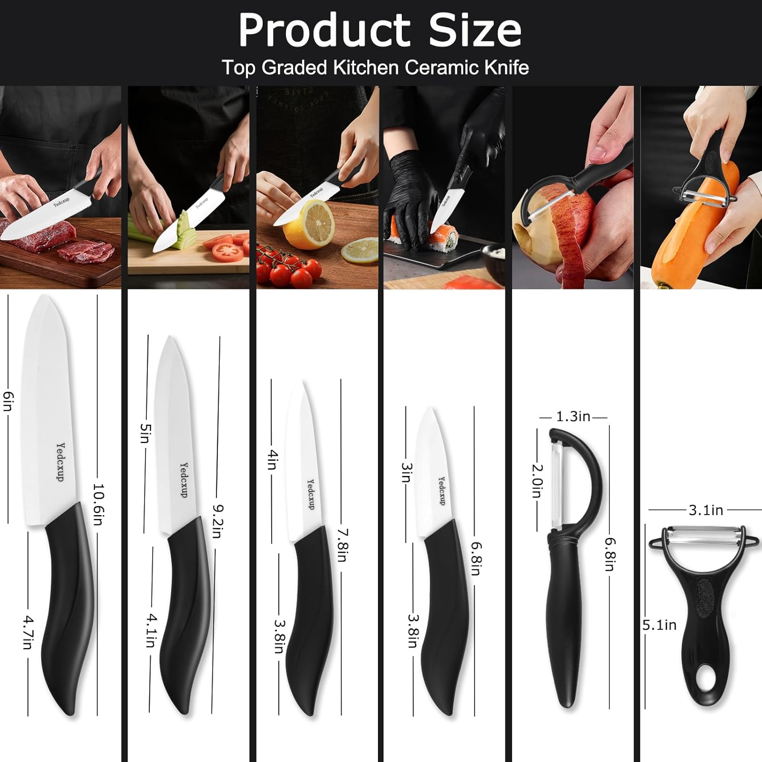 - 【EASY TO CLEAN, SAFE AND HEALTHY】—The non-porous structure design is easy to clean, ceramic knives can only be washed by hand,and cannot be washed in the dishwasher. eaving no lingering metallic taste, and ensures the cut ingredients retain their vibrant color and nutrients, thereby safeguarding the healthy diet of the family.