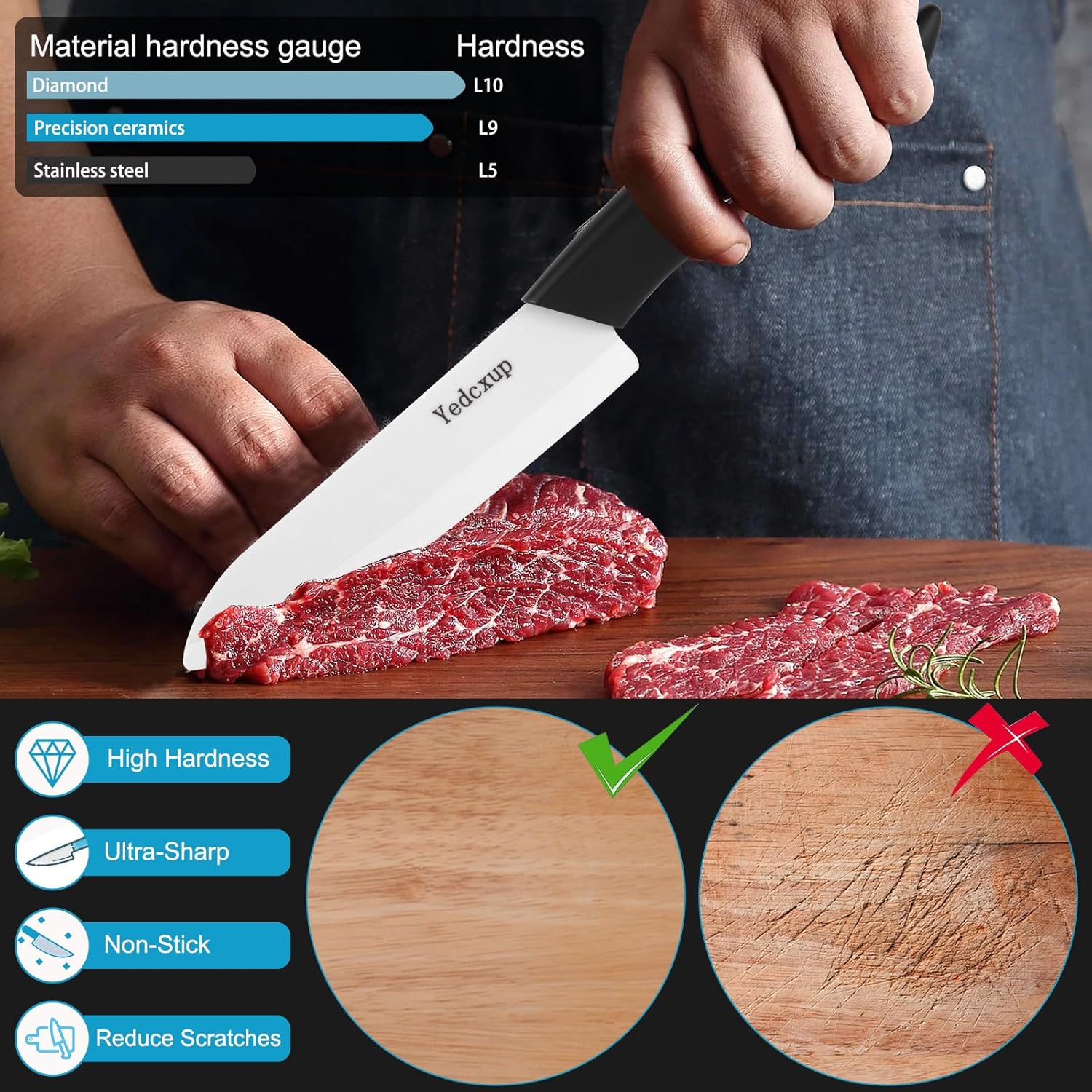- 【ULTRA-HIGH HARDNESS, SHARP AND LONG-LASTING】—The blade is as thin as 0.4mm, second only to diamond, and can easily cope with the fine cutting of fruits, vegetables and meat, and the blade is long-lasting and sharp, without sharpening.
