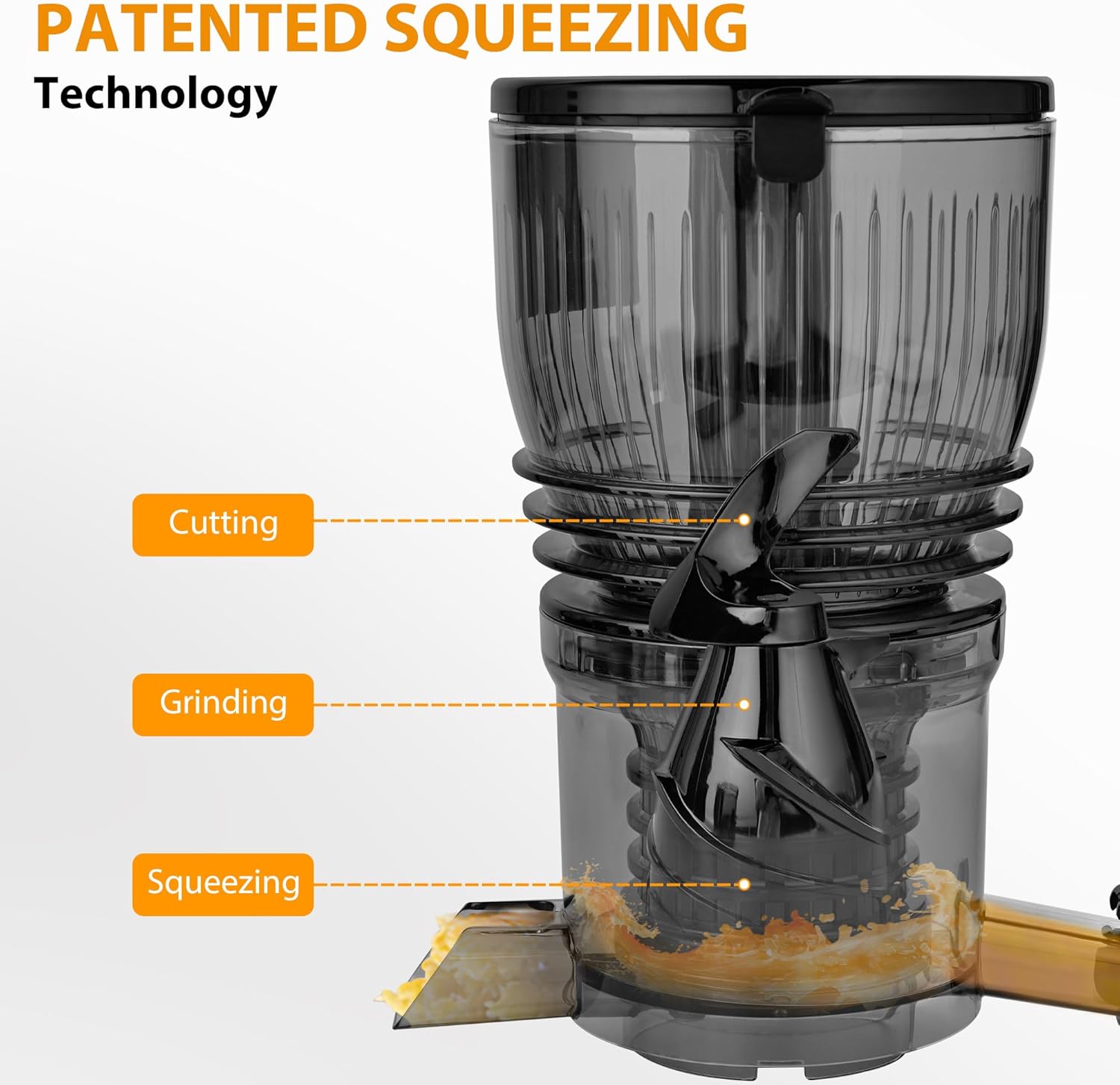 - 【5.8inch Feed Chute】The juicer is equipped with a large 5.8-inch feed chute that you can juice whole fruits and vegetables without chopping