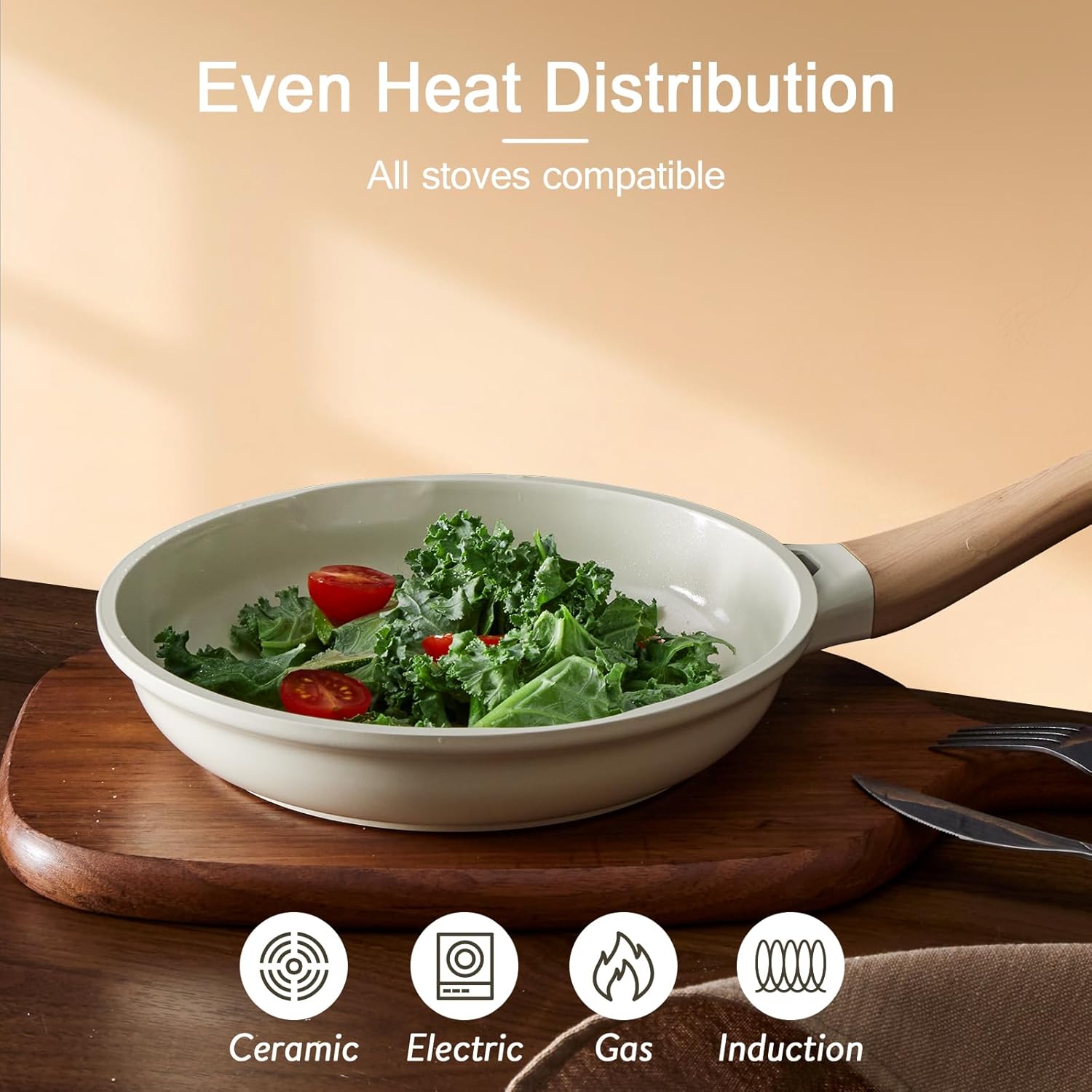 - 【Ti-Ceramic Coating Ultra Non-Stick & Non-Toxic】Engineered with a next-generation ceramic coating enhanced by titanium powder, this non toxic cookware set offers long-lasting nonstick performance and superior scratch resistance. 100% free from PFAS and other harmful chemicals—cook healthy with confidence
