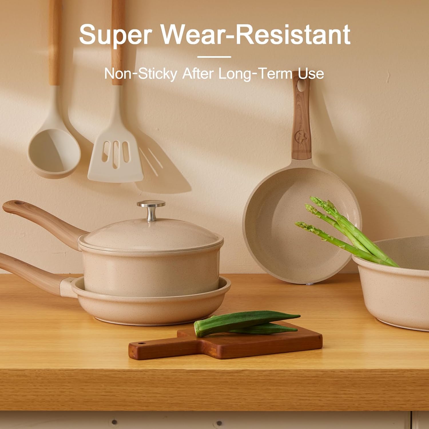 21Pcs Pots and Pans Set with Aluminum Lid, Nonstick Ti-Ceramic Cookware Sets, Induction Cookware Non Stick Cooking Set w/Frying Pans & Saucepans(PFOS, PFOA Free)-Taupe