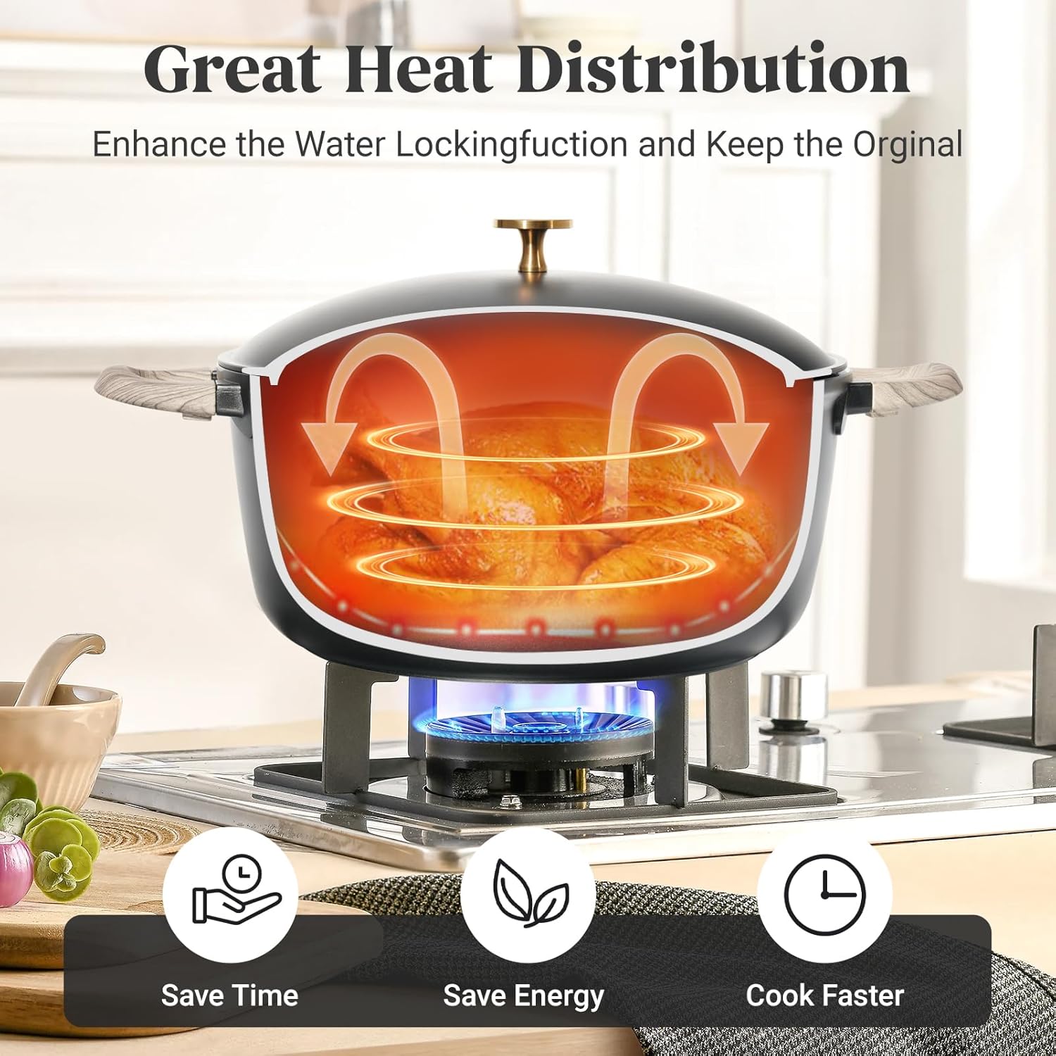 - 【Even Heating, Every Time】Designed for home chefs who demand speed and precision, this pots and pans set heats evenly with no hotspots, thanks to its extended bottom surface. Compatible with gas, electric, ceramic, and induction cooktops.