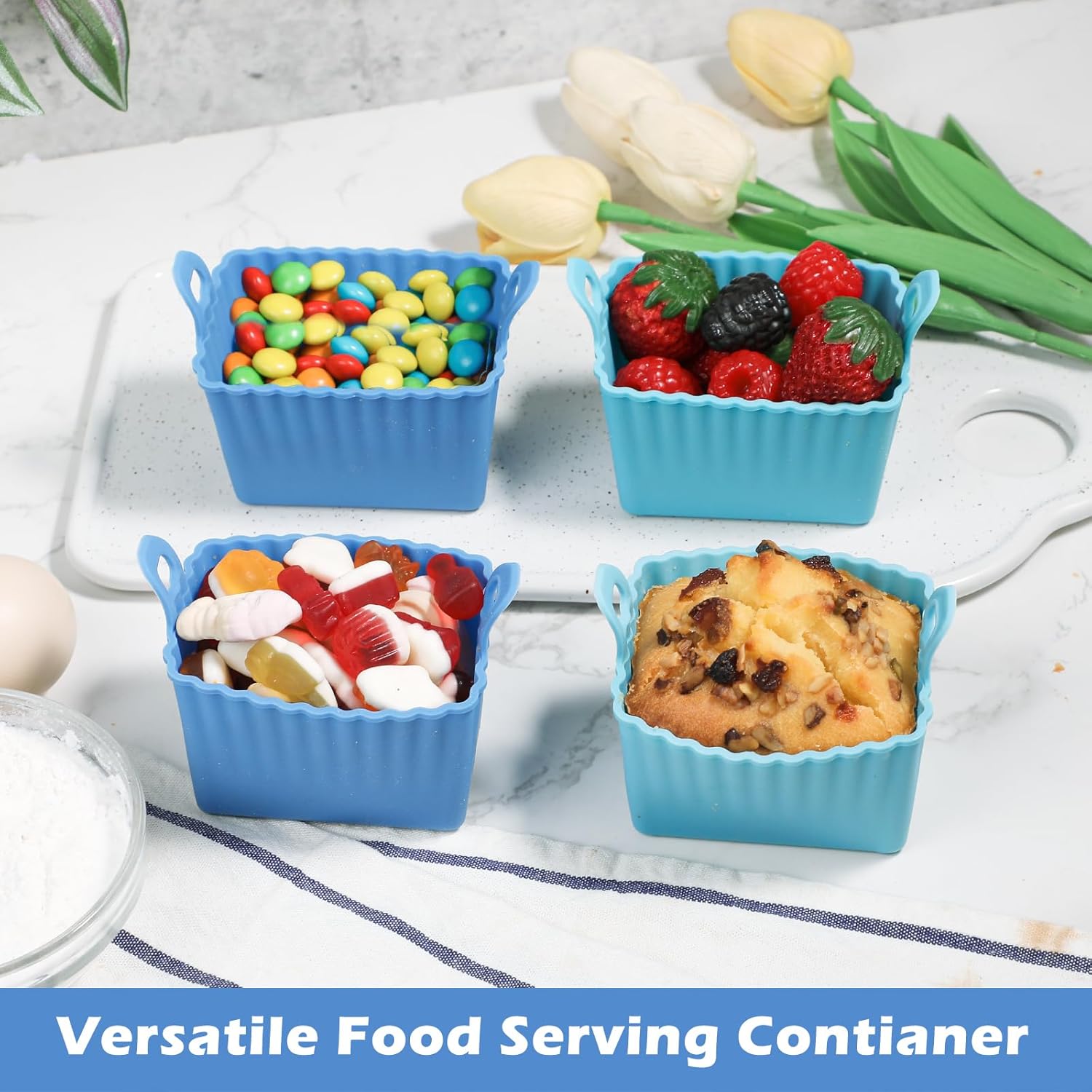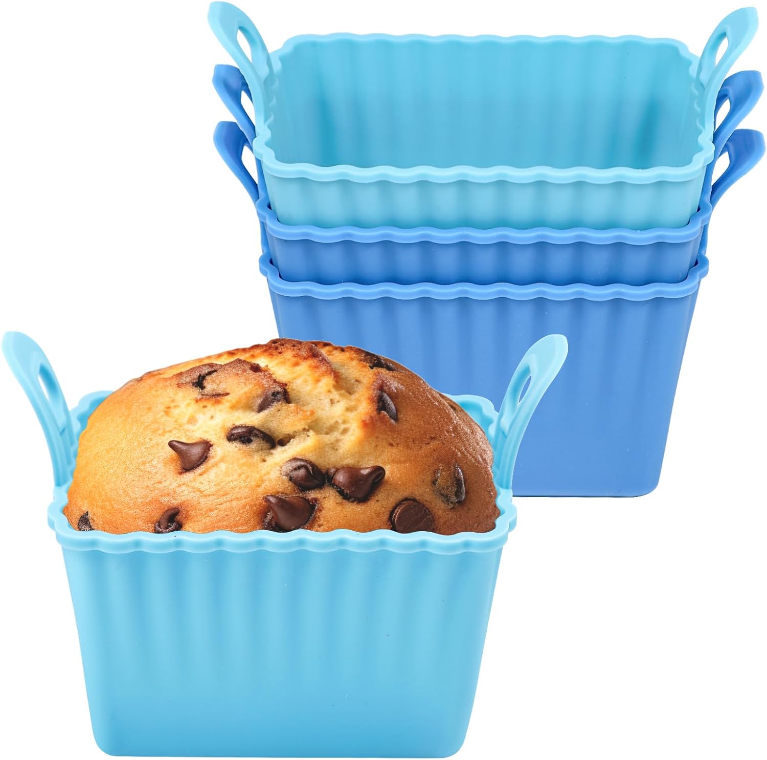Koluti Nonstick Silicone Muffin Baking Cups Pack of 4, Reusable Cupcake Molds with Double Handle, BPA Free, Small Rectangle Air Fryer Cupcakes Liner, 2 Colors