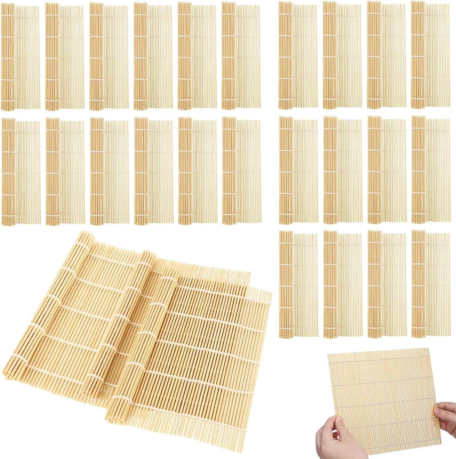 QTLCOHD 30 Pcs Bamboo Sushi Rolling Mat 9.5 x 9.5 Inch Bamboo Mats for Sushi Making Nonstick Kimbap Roller Bulk for Home Sushi Roll Party