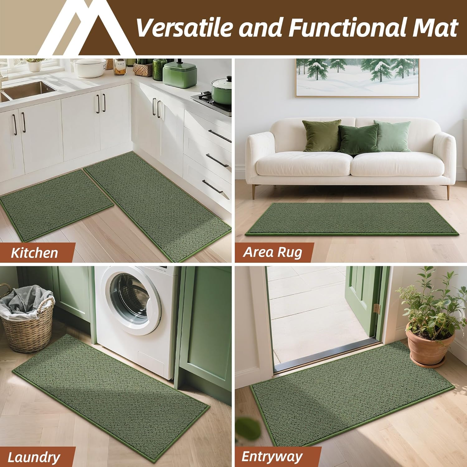 - Aesthetic Design The kitchen carpet has a classic aesthetic style.Unique W-shaped textured weaving designs make kitchen rug serve as practical kitchen mat while adding decorative charm to your space.Our kitchen sink rugs are used for kitchen, hallway,sink,laundry,door entrances and more.Note: the colors of mats may vary under different light conditions.If you have any problem,please feel free to contact us