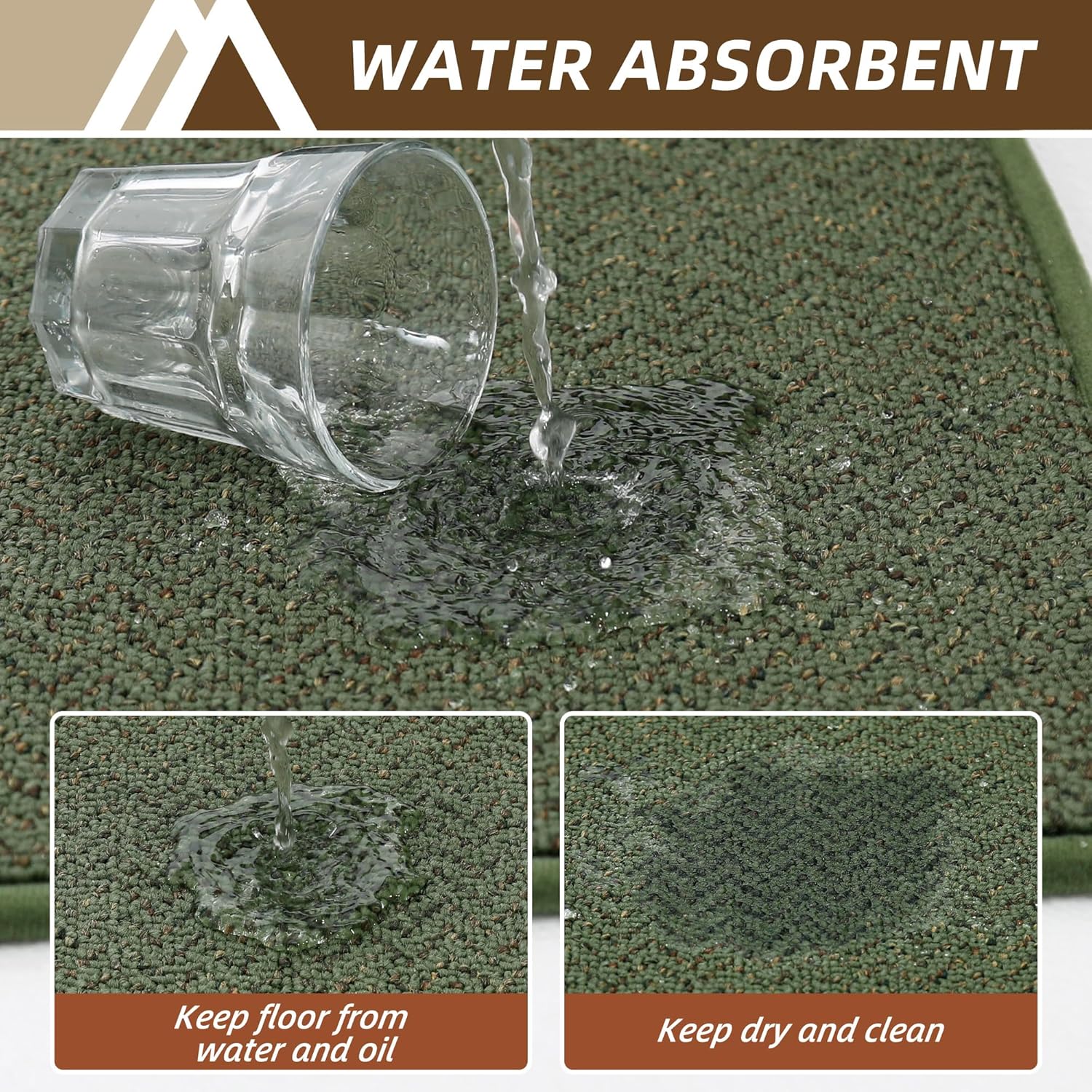 COSY HOMEER Kitchen Rugs Non Slip Washable 24"x36"+24"x60" Absorbent Kitchen Mats for Floor Stain Resistant Kitchen Runner Rug Sets of 2 Kitchen Floor Mats for Sink,Green