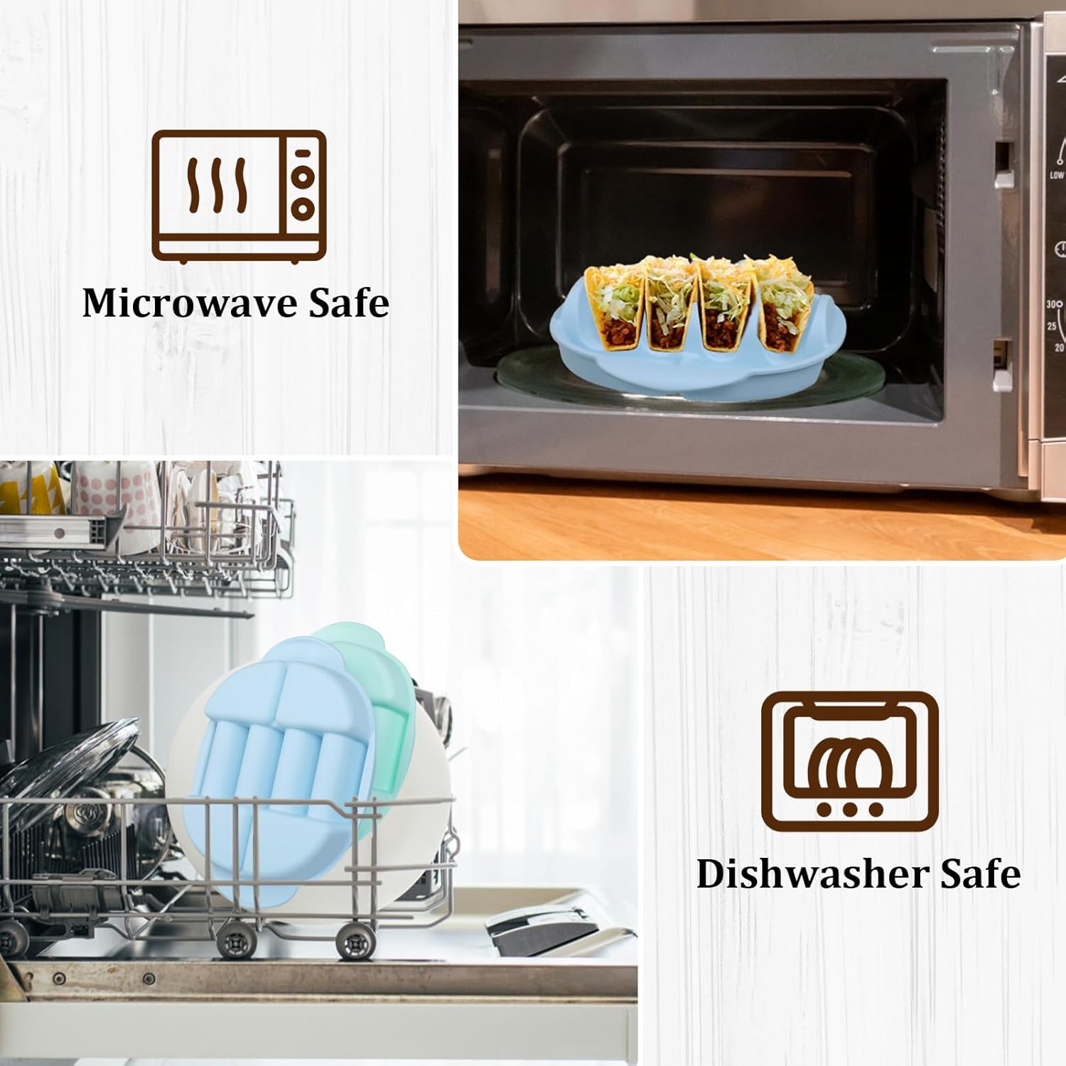 - Upgraded Handle and Grid Design --- Unlike traditional taco trays, our taco rack features upgraded handles on both sides, allowing you to happily walk and hold the plate from the two sides. Especially when you take it out of the microwave, it is more convenient without the need to support the hot bottom. And it is designed with 4 small grids for better placement of different dipping sauces or side dishes.