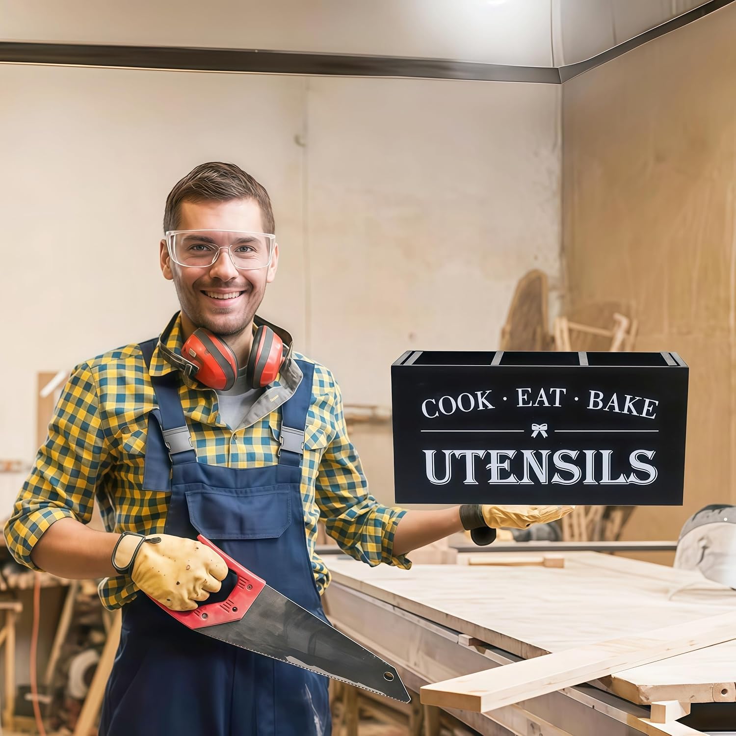 - Durability & Ease of Care: Made from robust wood, this utensil holder is built to last, withstanding daily use and the test of time. The smooth, finished surface is easy to clean; simply wipe with a damp cloth to maintain its beautiful appearance.