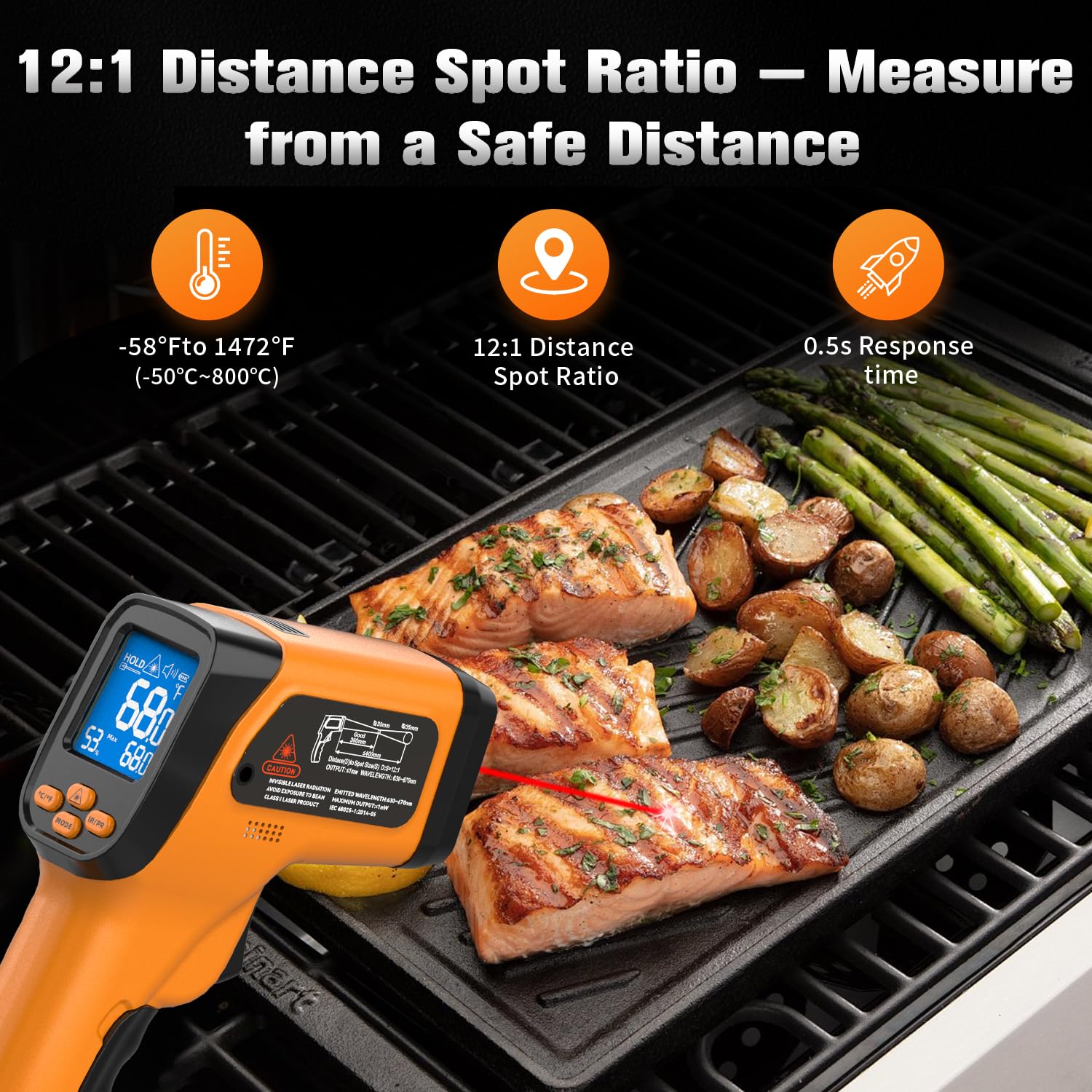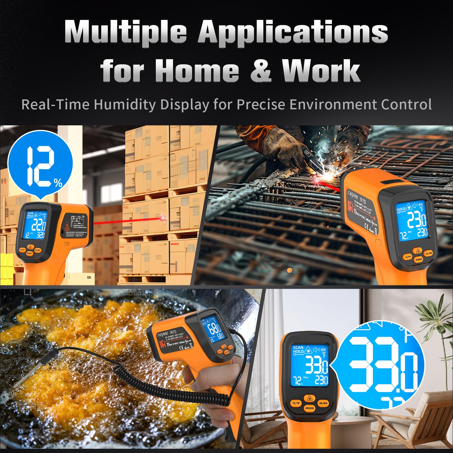 Infrared Thermometer Temperature Gun, Non-Contact Digital Laser Temp -58°F to 1472°F, K-Type Probe -58°F to 572°F, for Cooking, Pizza Oven, BBQ, HVAC, Home & Industrial