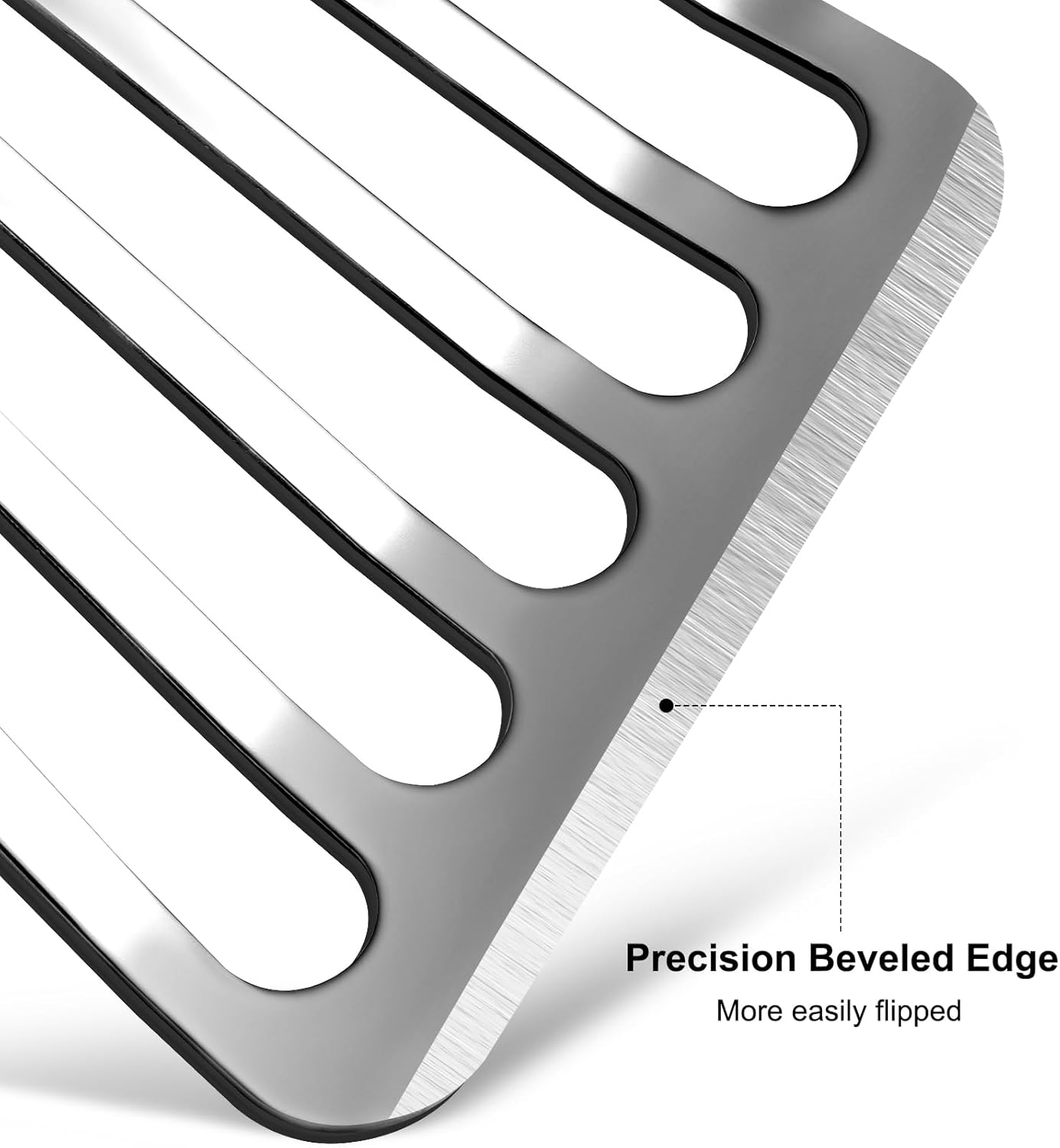 - Multi-Functional:As a versatile fish flipper spatula, it excels in flipping, turning, and serving a variety of foods, from delicate fish fillets to burgers and pancakes, thanks to its slim, flexible design and precision beveled edge.