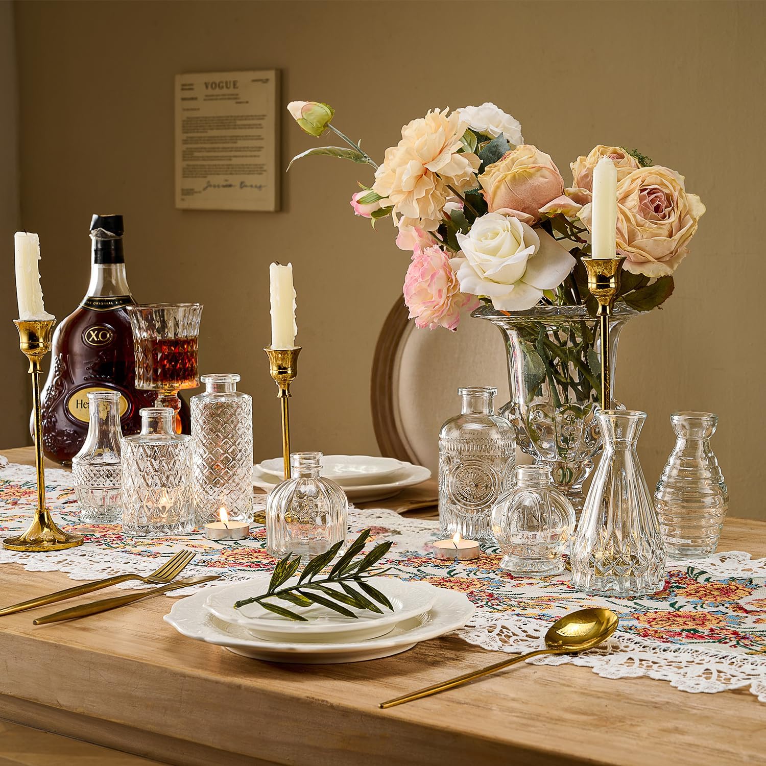 - Versatile Flower Bud Vase Set: This set comprises 40 diverse transparent glass flower bud vases, each adorned with etched designs to further elevate their charm. It is perfectly suited for any home décor. Whether placed as a centerpiece on dining tables, window sills, or wedding banquet tables, these small vintage crystal vases will lend an air of elegance to the setting.
