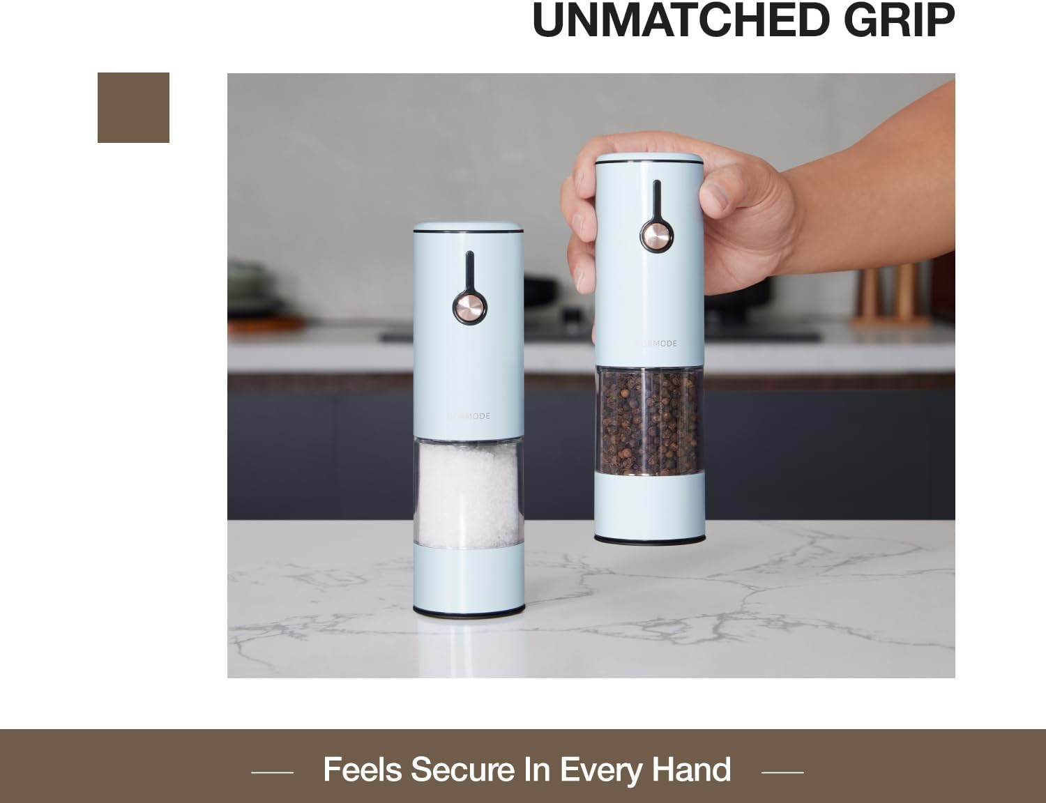 - USB-C Rechargeable Pepper Grinder Dual LED Light Salt Mill Corrosion-proof ceramic gears.