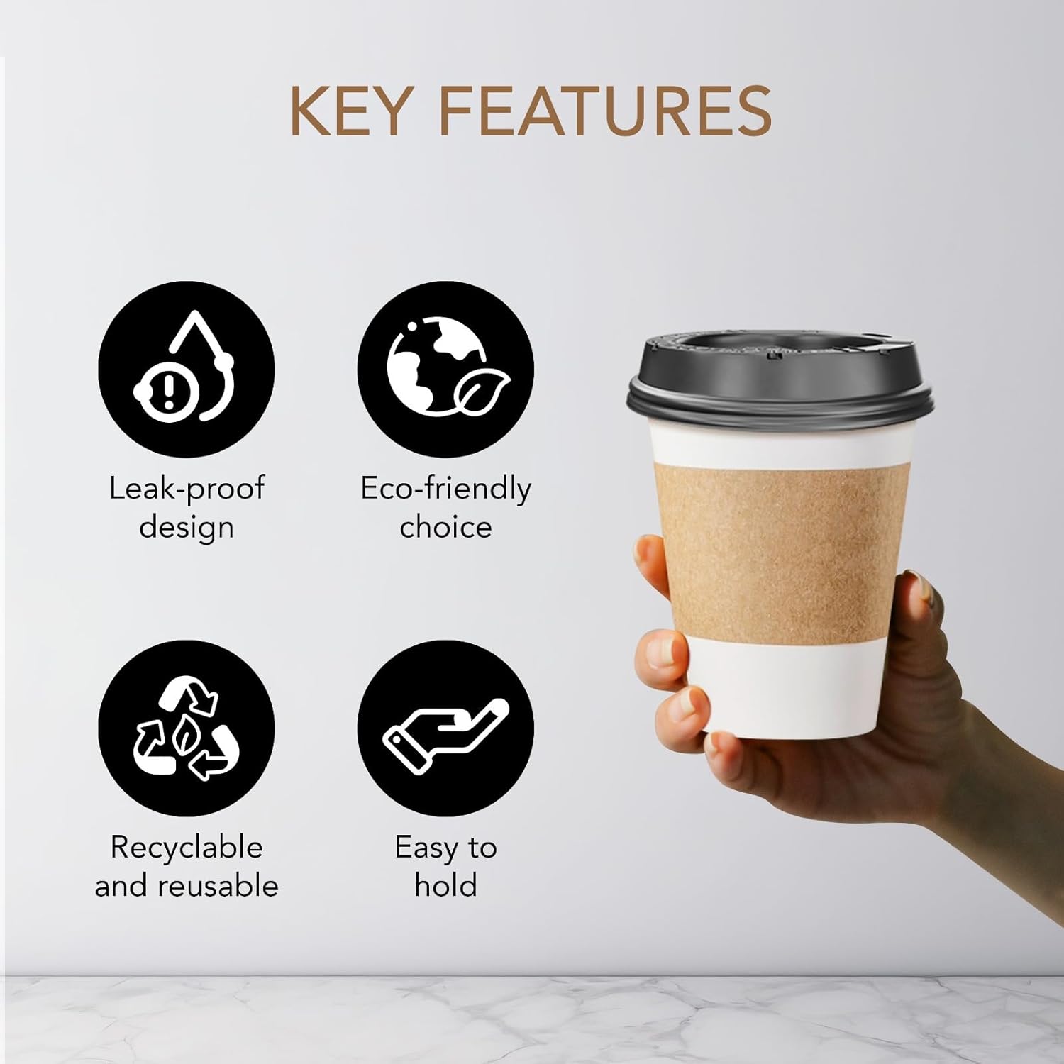 - Leak-Proof and Long-Lasting: Our 12 oz disposable coffee cups with lids feature a tight seal to prevent spills, with a deep-fit bottom that stays secure for up to 24 hours.