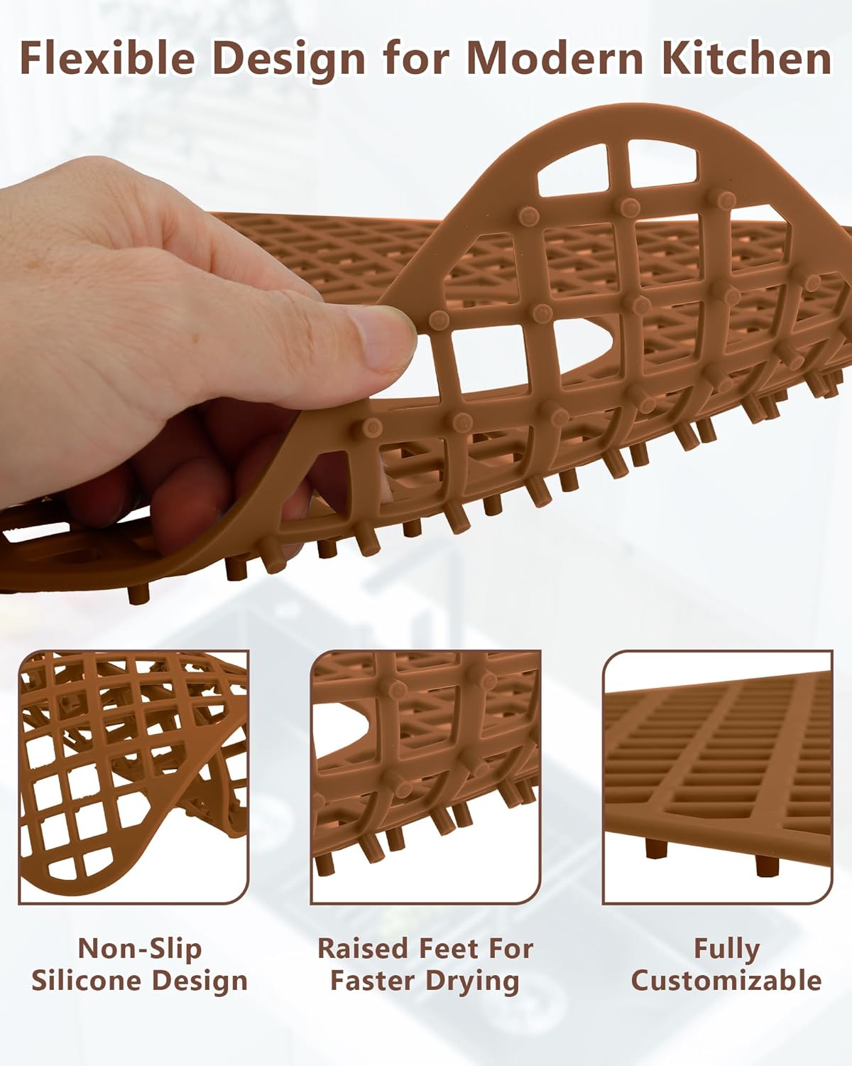 - Gentle Yet Secure Surface - Engineered with a unique soft-yet-strong design that prevents chips in glassware while supporting heavy ceramics. The textured surface cushions items while the grippy underside prevents slips - even when wet. Flexible material conforms perfectly to your sink's shape, creating the ultimate stable workspace for all kitchen tasks.