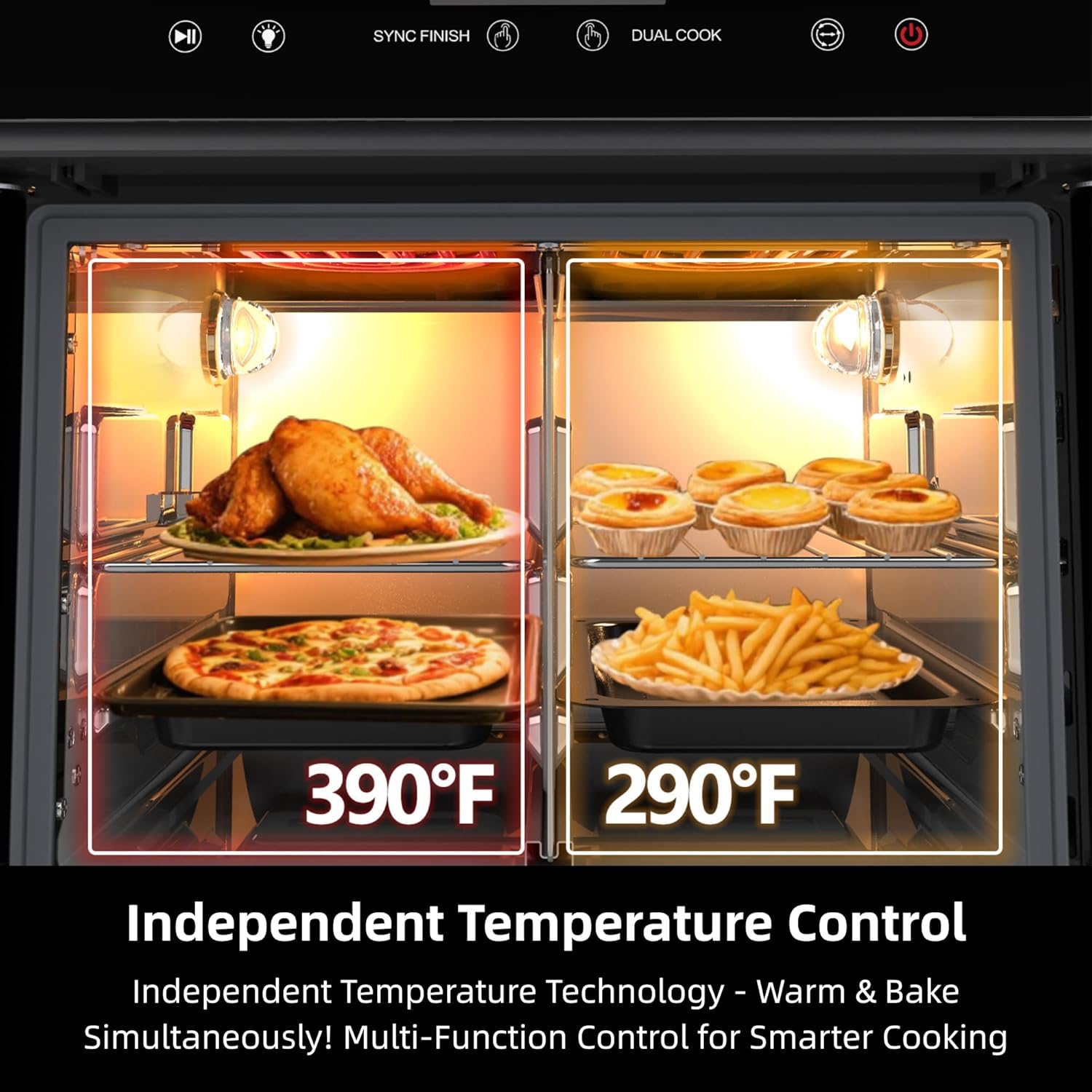 - 4. **β±οΈ Dual-Door Design for Smart Cooking: French doors open with a single pull β an interior light allows you to monitor your food as it cooks. Perfect for after-school snacks AND holiday feasts in one sleek unit.