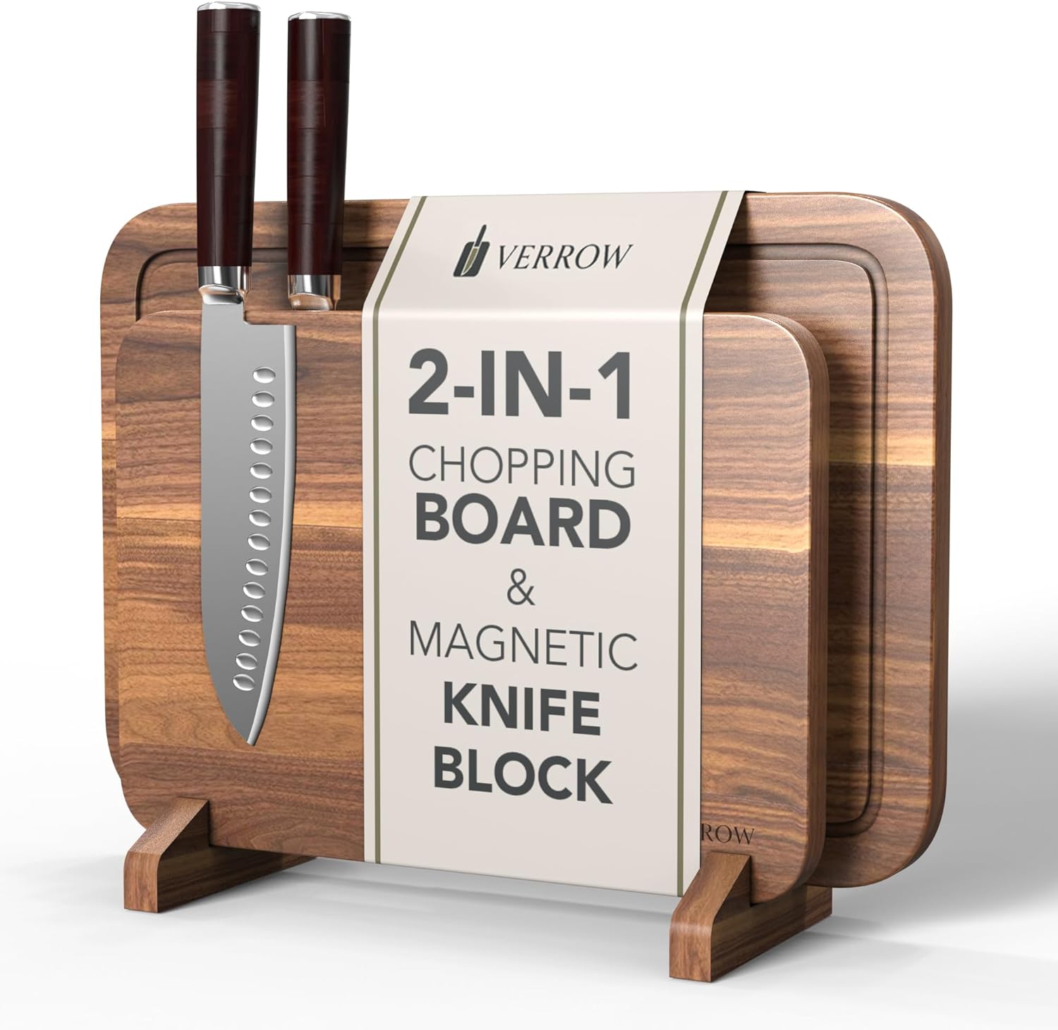 - š¹ The Perfect Combo for Your Kitchen: Whether a professional chef or you simply enjoy surprising your family and friends with delicious, home-cooked meals, these wood cutting boards for kitchen with magnetic knife block will make your cooking process easier, adding a stylish touch to your modern kitchen! Knifes not included.