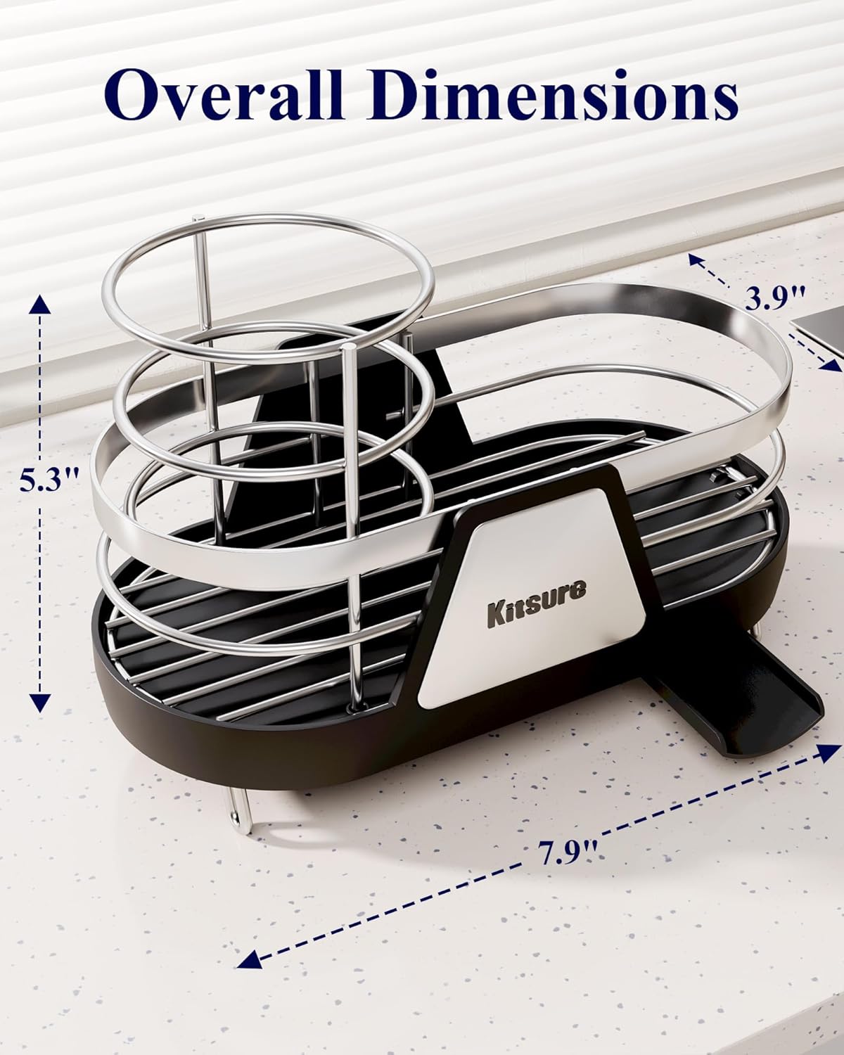 - COMPACT YET EFFICIENT: This compact sponge caddy measures just 7.9"×3.9"×5.3", making it ideal for narrow sink areas and small countertops. Its space-saving design offers reliable storage without crowding your workspace. This sink organizer makes the kitchen appliance a practical choice for kitchens with limited surface area.