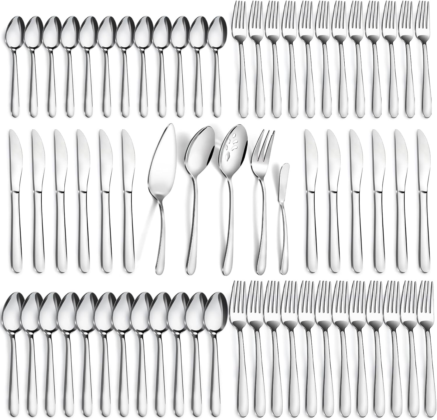 Pleafind 65-Pieces Silverware Set for 12 with 5 Serving Utensils,Stainless Steel Cutlery Set, Include Forks Spoons and Knives Set, Mirror Polished Utensil Sets for Home Restaurant,Dishwasher Safe