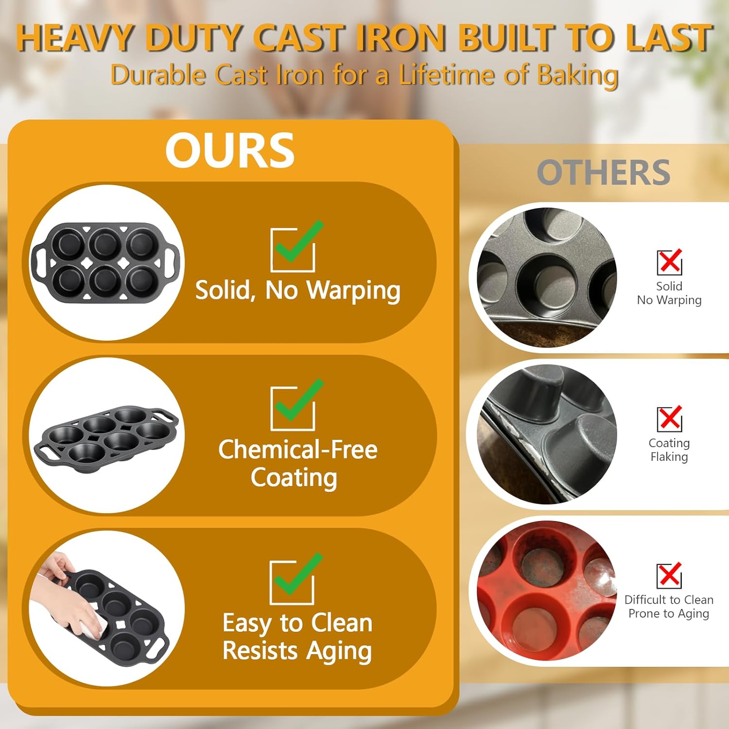 - BUILT TO LAST: Constructed from heavy-duty premium cast iron, this muffin tin resists denting, bending, warping, and scratching — making it durable enough to serve your family for decades