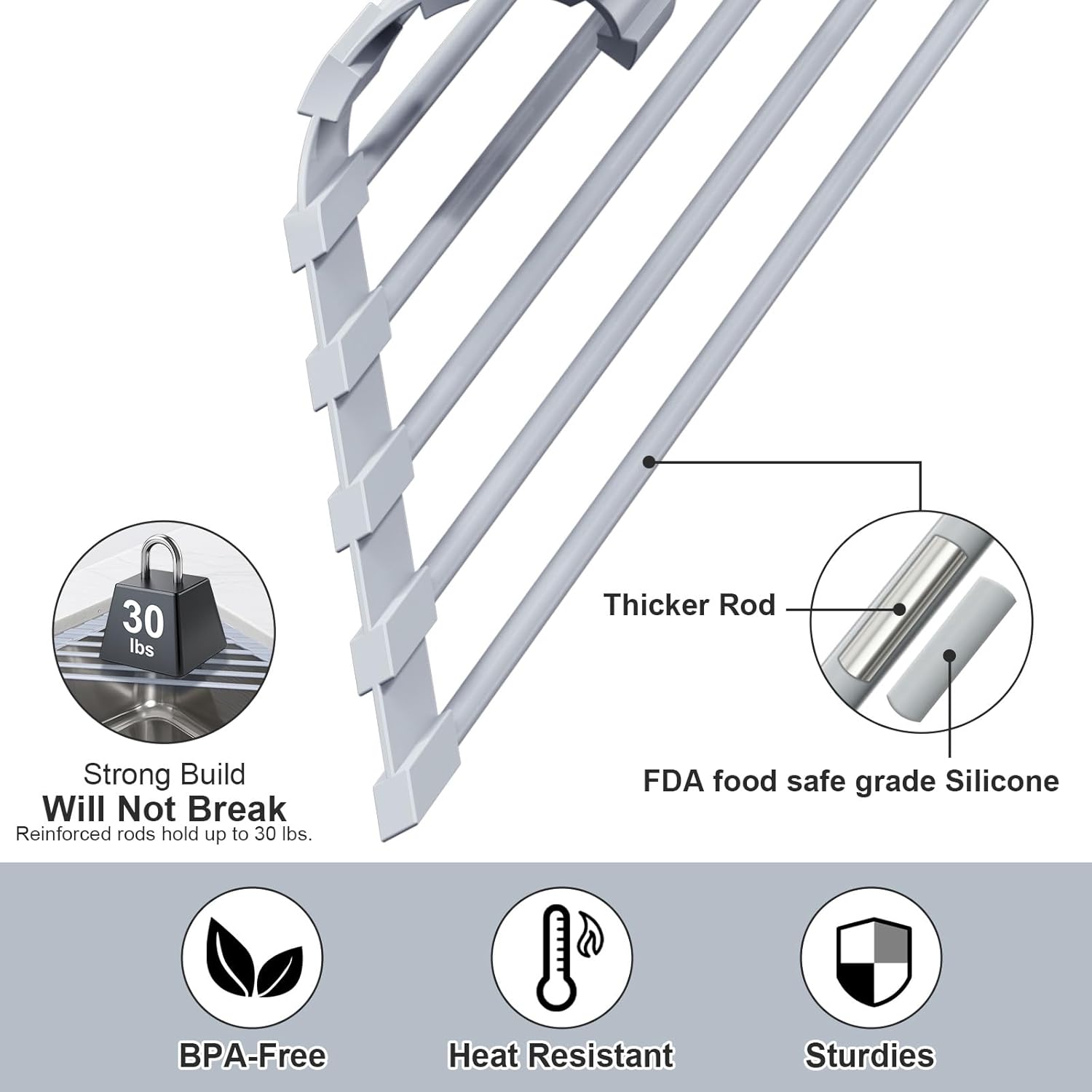 - ✔️【Food Grade Material, Safe and Customizable】BPA free food grade silicone wrapped in 304 stainless steel, anti-slip and anti-rust, safe for contact with utensils. Silicone edge supports scissor cutting, free to adjust the size, perfect fit for personalized space. Sturdy structure to support heavy objects, long-lasting use without deformation.